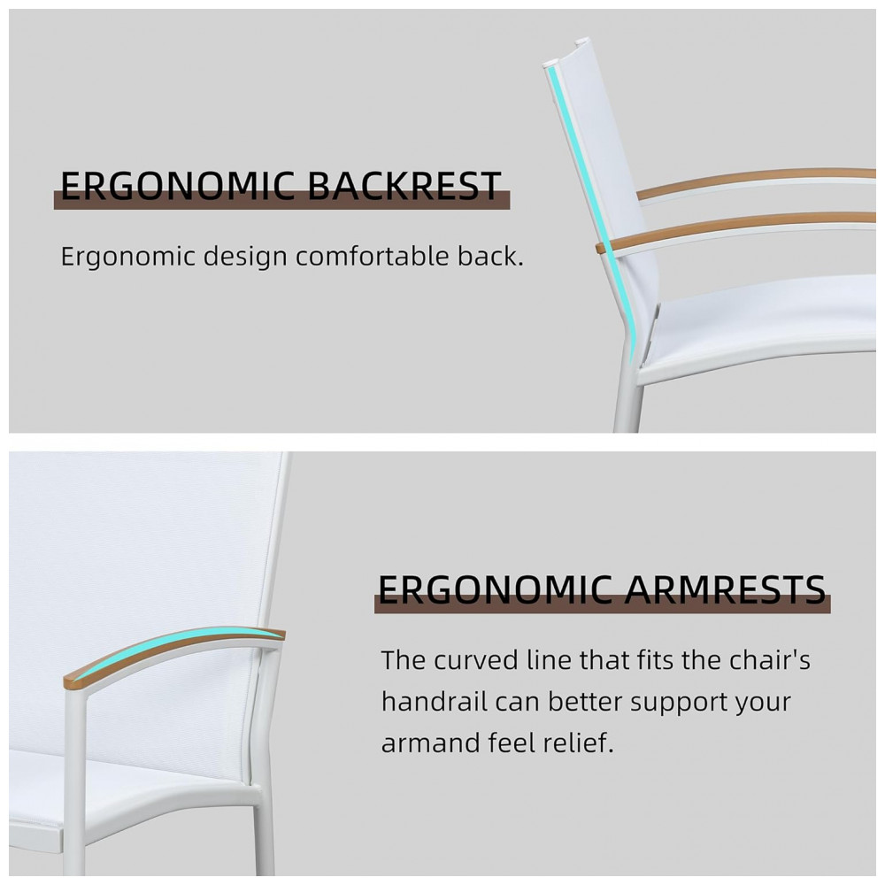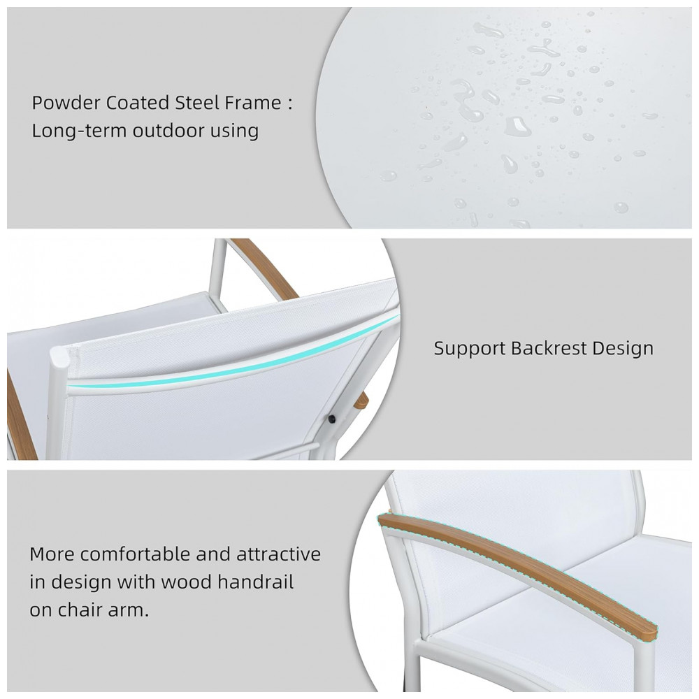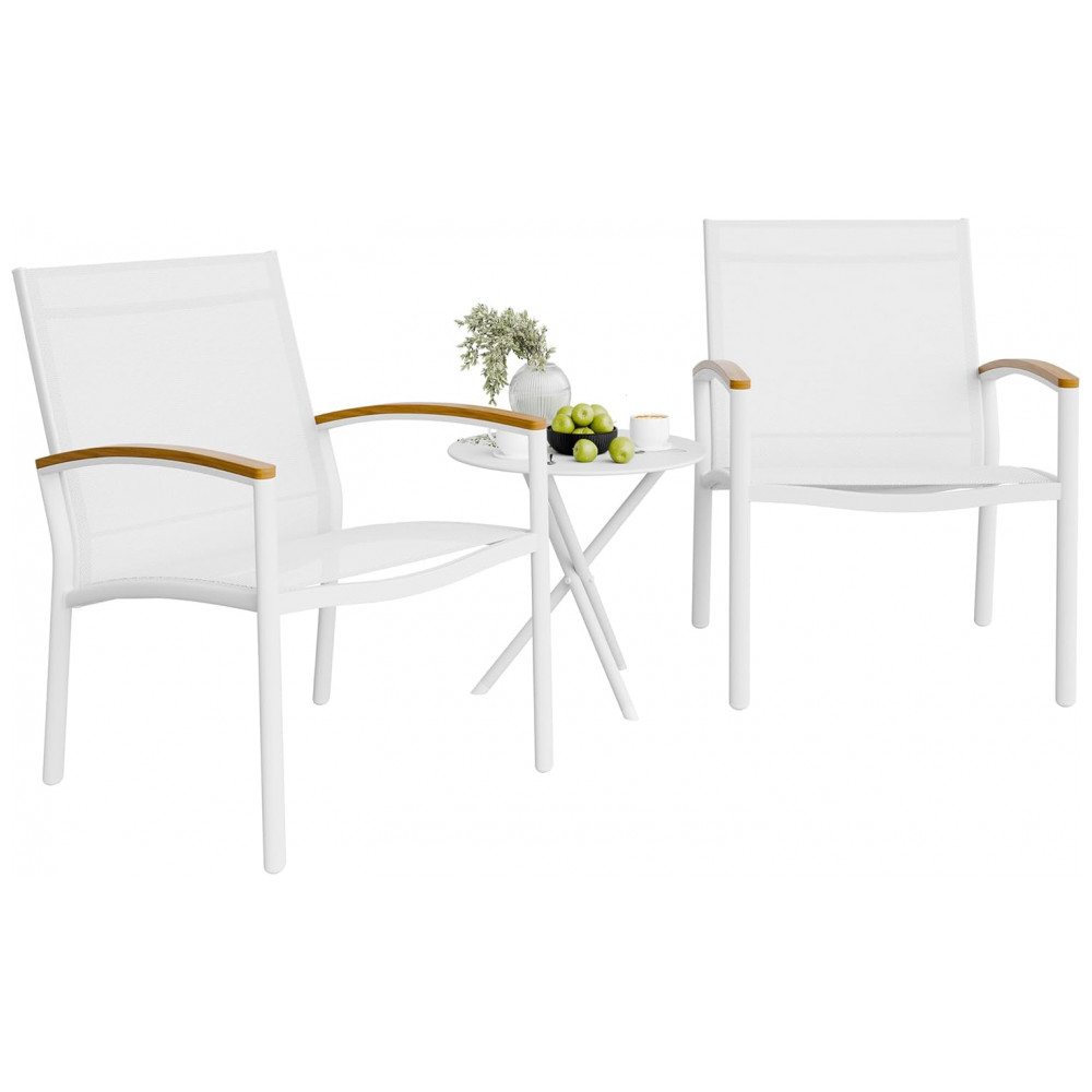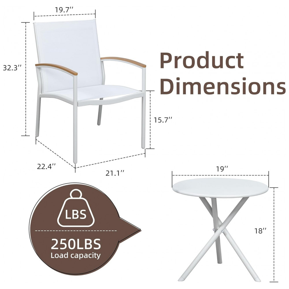 Conjunto de Bistrô de 3 Peças Shintenchi Móveis de Pátio Pequenos com Cadeiras de Balanço de Tecido Textilene para Varanda Jardim e Quintal Branco