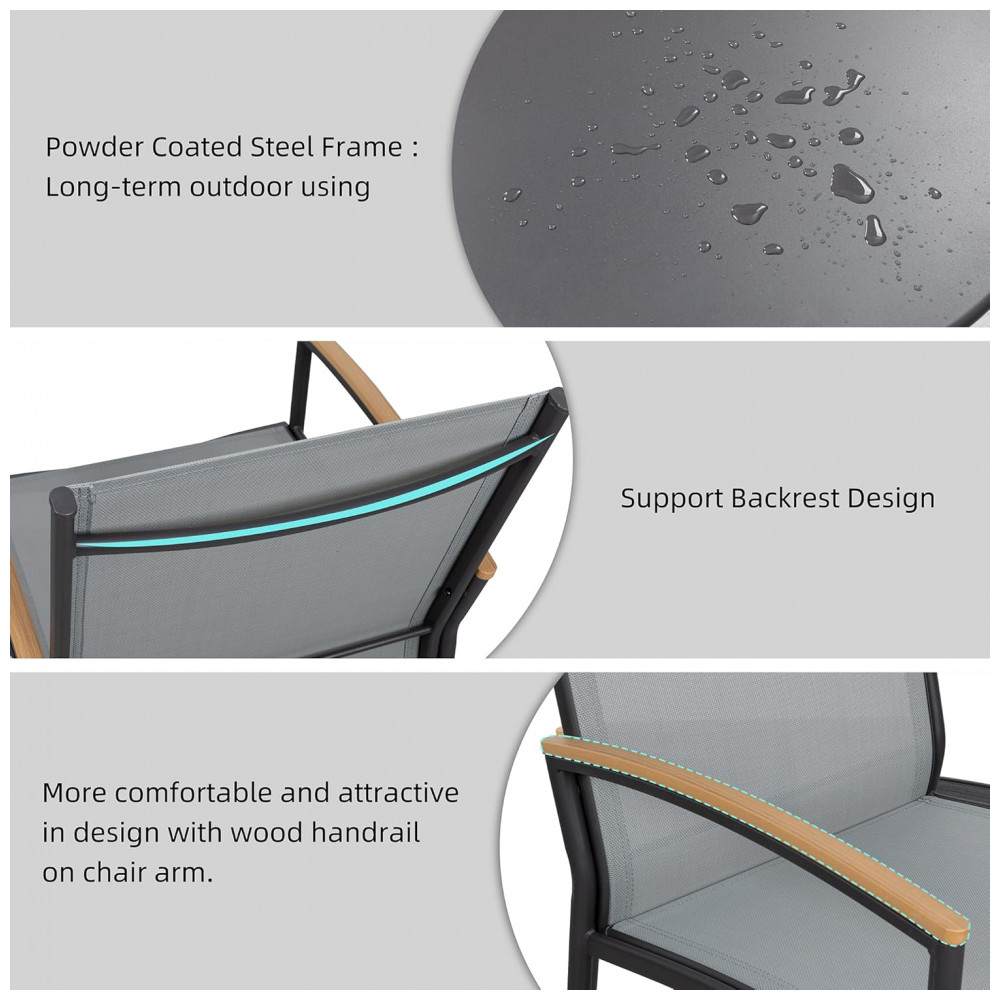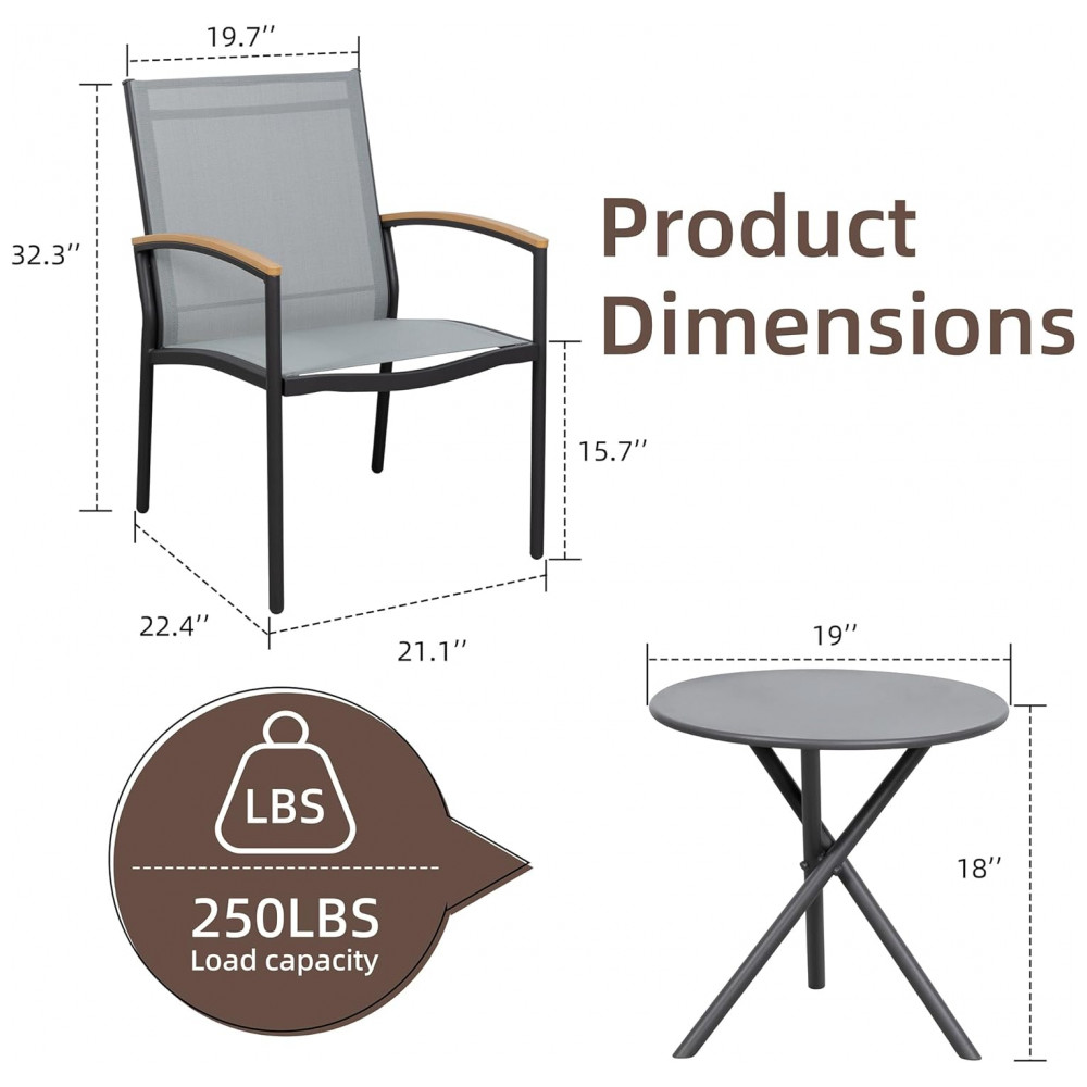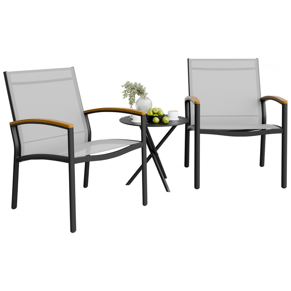 Conjunto de Bistrô para Pátio com 3 Peças Shintenchi Conjunto de Conversação em Tecido Textilene para Área Externa Cadeiras de Tecido Textilene