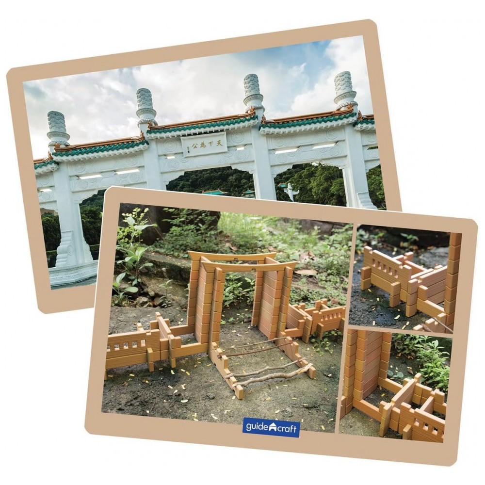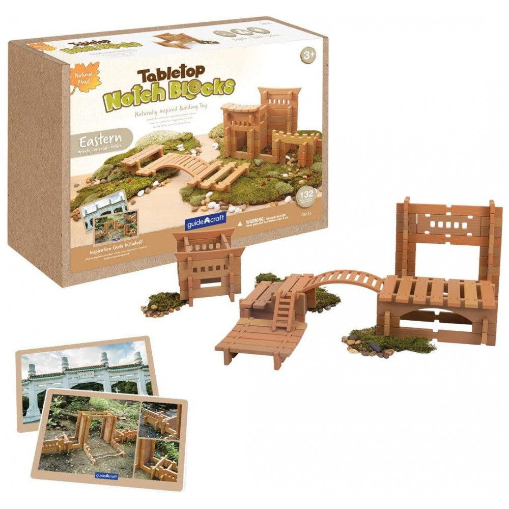 Conjunto de blocos de construção Guidecraft Tabletop Notch Blocks Eastern com 132 peças em plástico TPE para arquitetura em miniatura