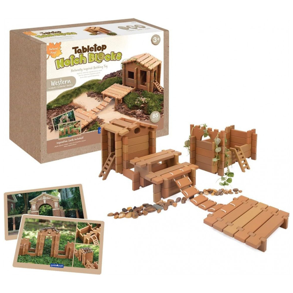 Conjunto de blocos de construção Guidecraft Tabletop Notch Blocks Western com 85 peças em plástico TPE para arquitetura em miniatura