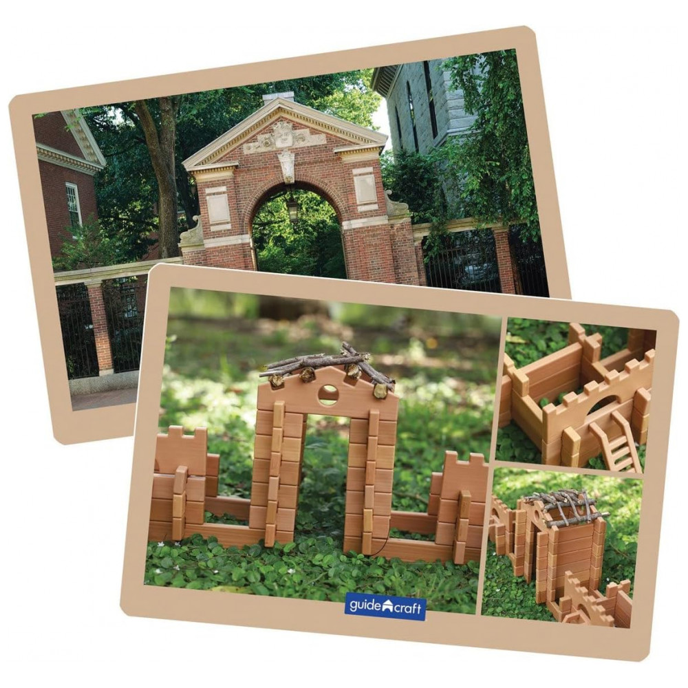 O material em TPE sólido e resistente foi projetado para uso em ambientes internos e externos, inclusive em propostas com água, areia, terra e outros materiais soltos. O conjunto inclui 10 cartas de inspiração dupla face com imagens de construções e referências de arquitetura ocidental, auxiliando na criação de cenários para brincadeiras de faz de conta e projetos de engenharia em escala reduzida.