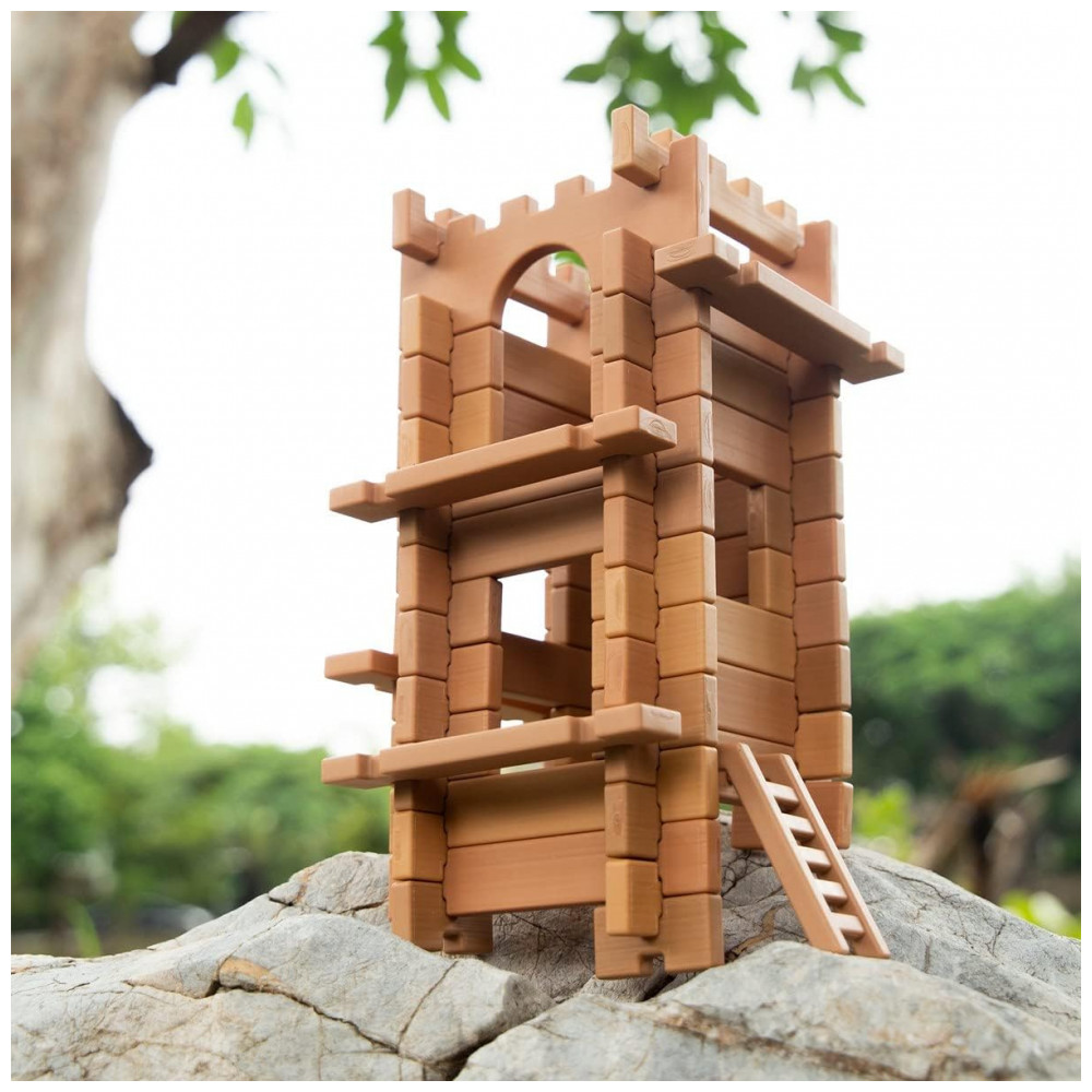 O Guidecraft Tabletop Notch Blocks Western 85 peças é um conjunto de blocos de construção em plástico TPE em tom de madeira, desenvolvido para crianças a partir de 3 anos montarem estruturas arquitetônicas inspiradas em construções do Ocidente em superfícies de mesa. As peças apresentam entalhes que se encaixam entre si, permitindo conexões firmes para criar plataformas elevadas, fachadas e passagens com bom nível de detalhe.