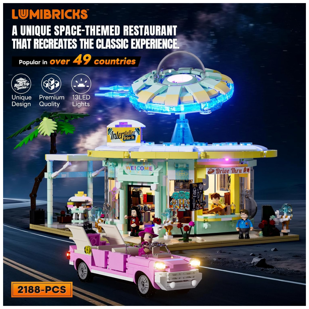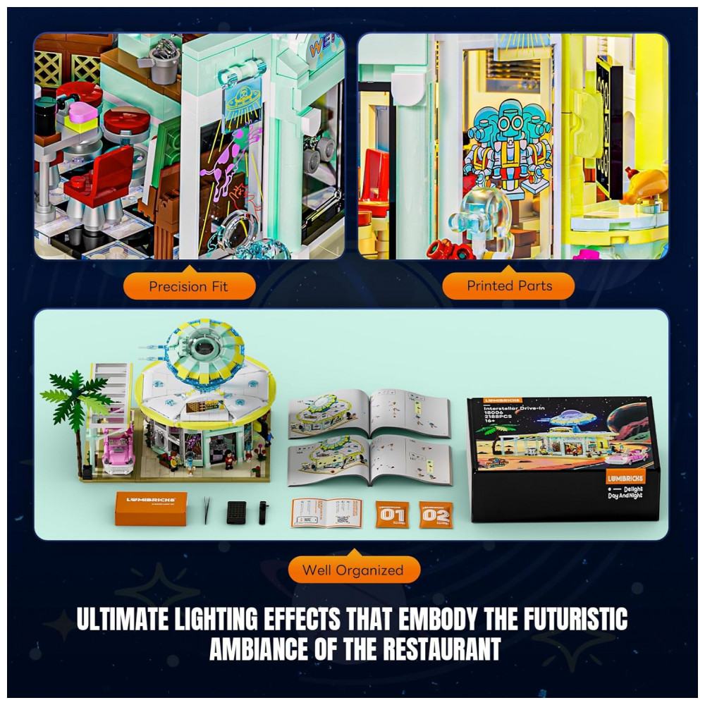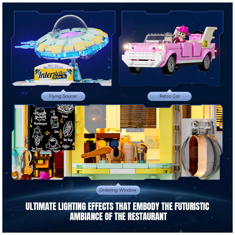 Conjunto de blocos de montar Lumibricks Interstellar-Diner com iluminação LED 2188 peças tema viagem espacial