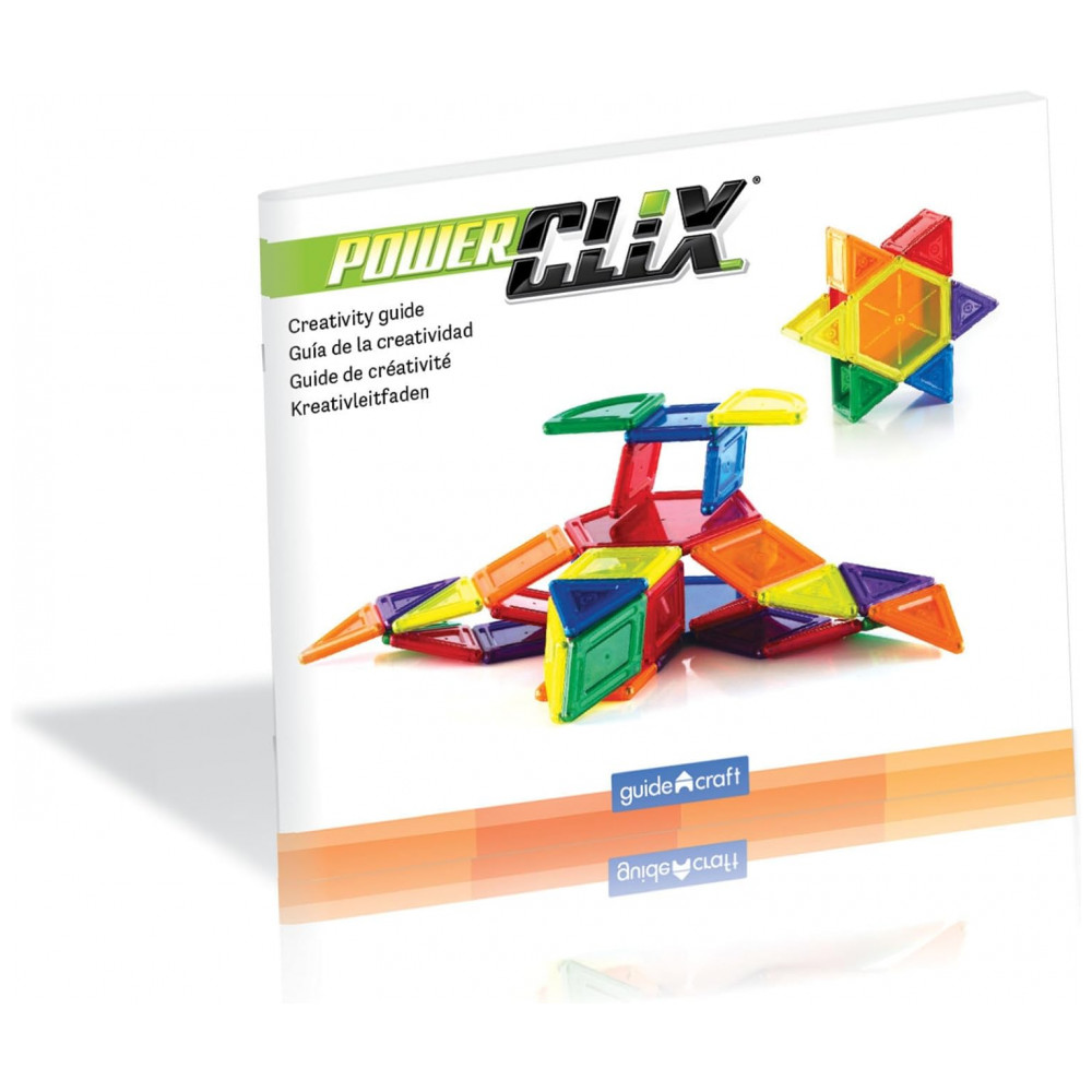 O Guidecraft PowerClix Solids 94 peças é um conjunto de construção magnético aberto, formado por blocos geométricos sólidos em plástico ABS translúcido com ímãs de neodímio encapsulados. As peças conectam-se por um sistema de clique magnético em que os ímãs não se repelem, facilitando a criação de modelos em duas e três dimensões por crianças a partir de 3 anos.