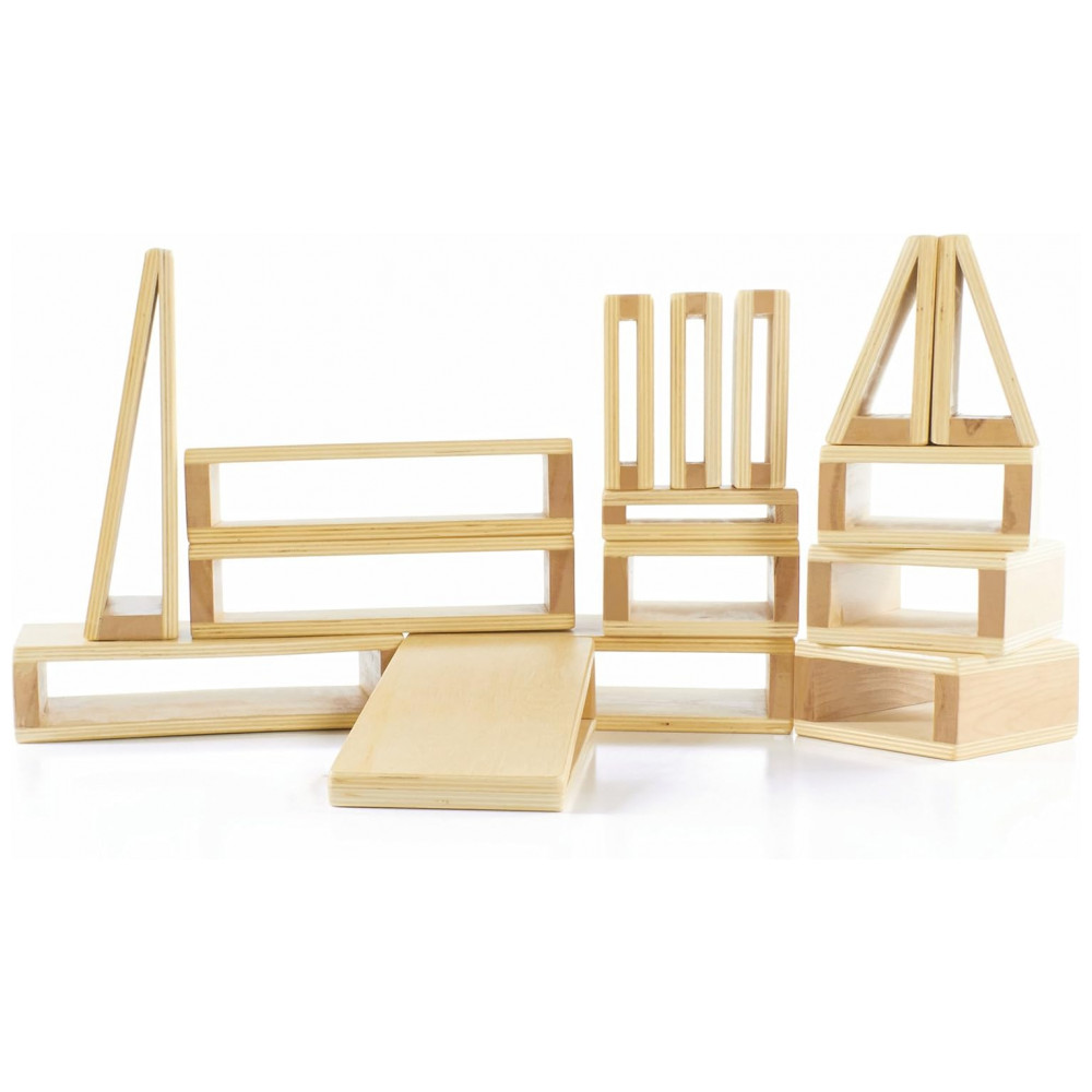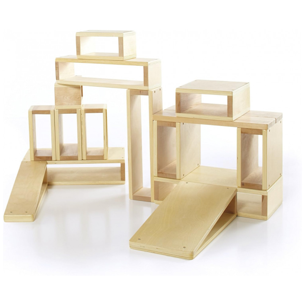 Conjunto de blocos ocos Guidecraft Jr. Hollow Blocks com 16 peças grandes em madeira para construções em escala infantil – Aprendizado STEM