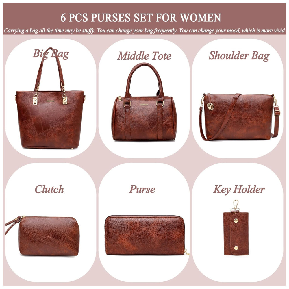 O conjunto 2E juventude inclui uma bolsa grande, uma bolsa média, uma bolsa de ombro, uma embreagem, uma bolsa e um porta chaves, oferecendo diversas opções de uso para diferentes ocasiões. As dimensões do conjunto variam de acordo com o modelo, mas todas as peças são práticas e funcionais.