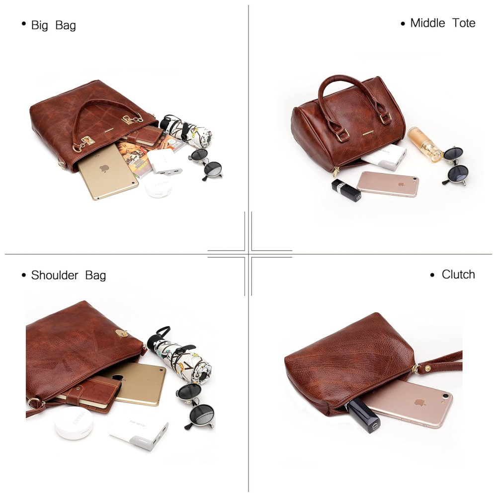Conjunto de Bolsas Femininas 3 Peças com Carteira 2E youth Marrom