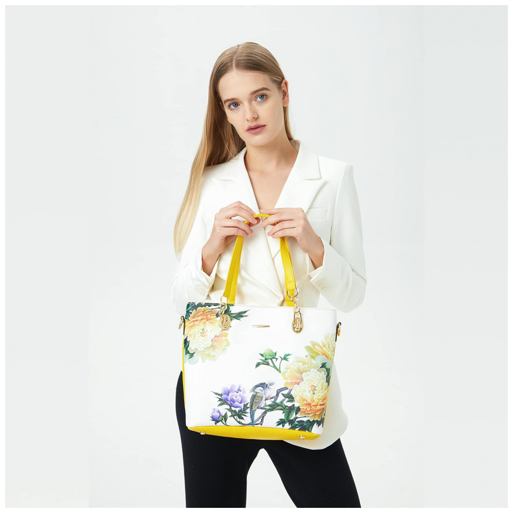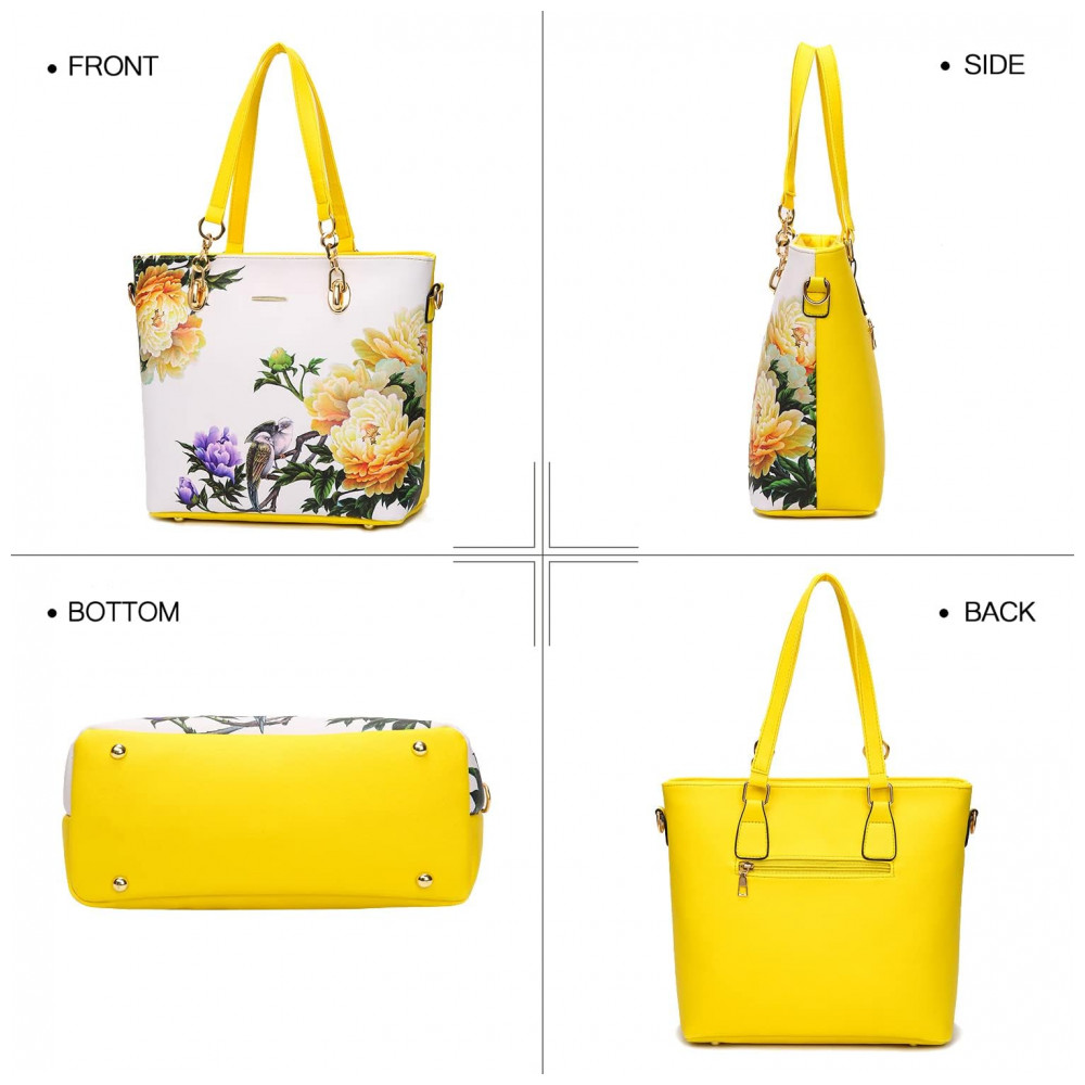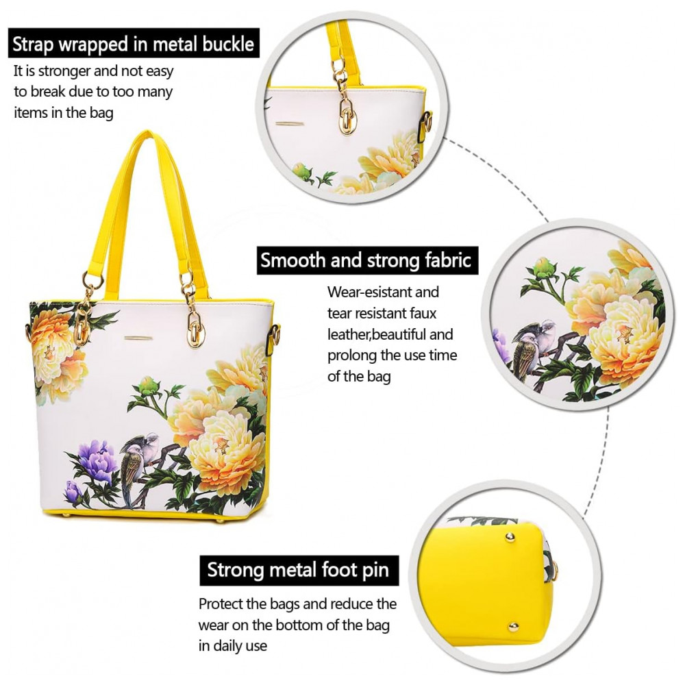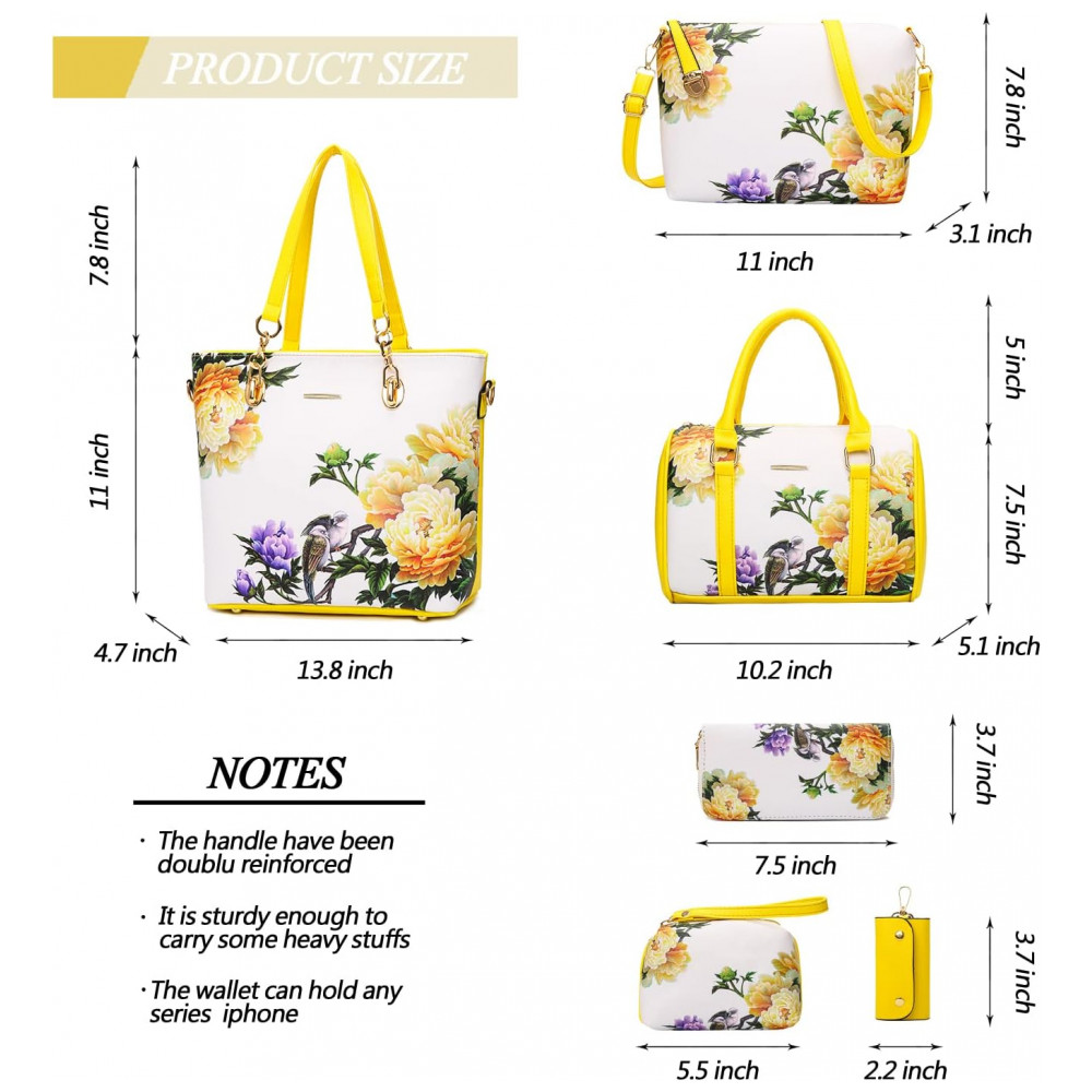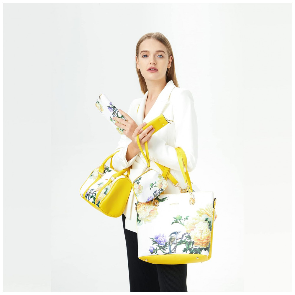 Conjunto de Bolsas Femininas 6 Peças com Carteira 2E youth Amarelo Florido