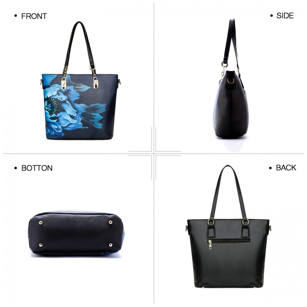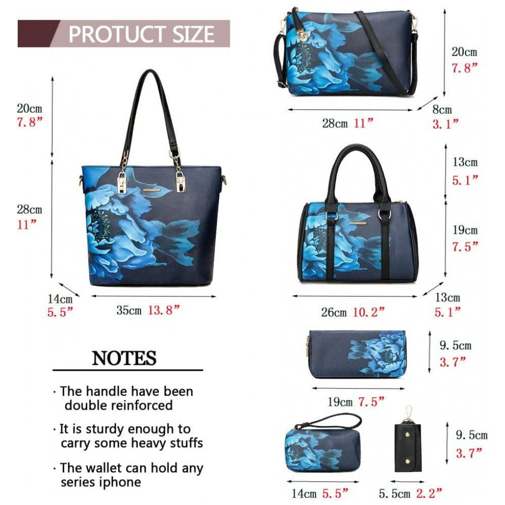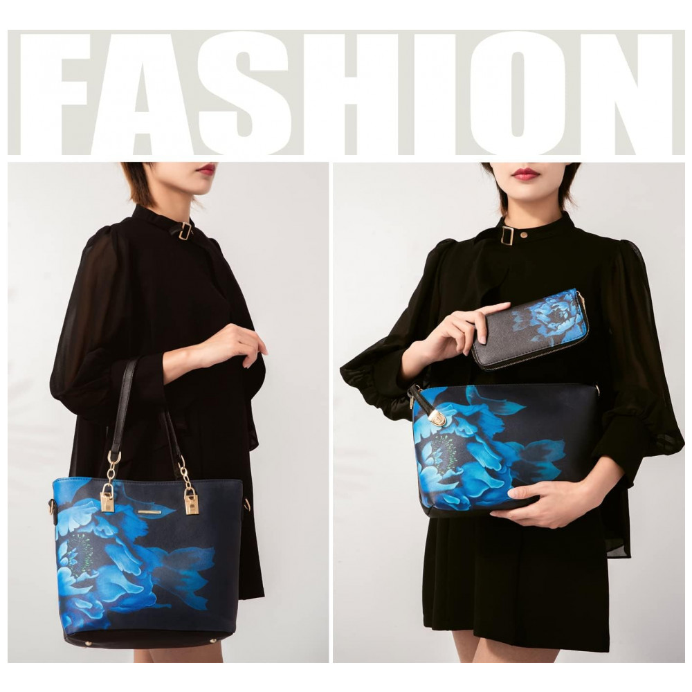 Conjunto de Bolsas Femininas 6 Peças com Carteira 2E youth Azul Florido
