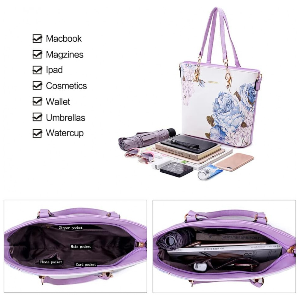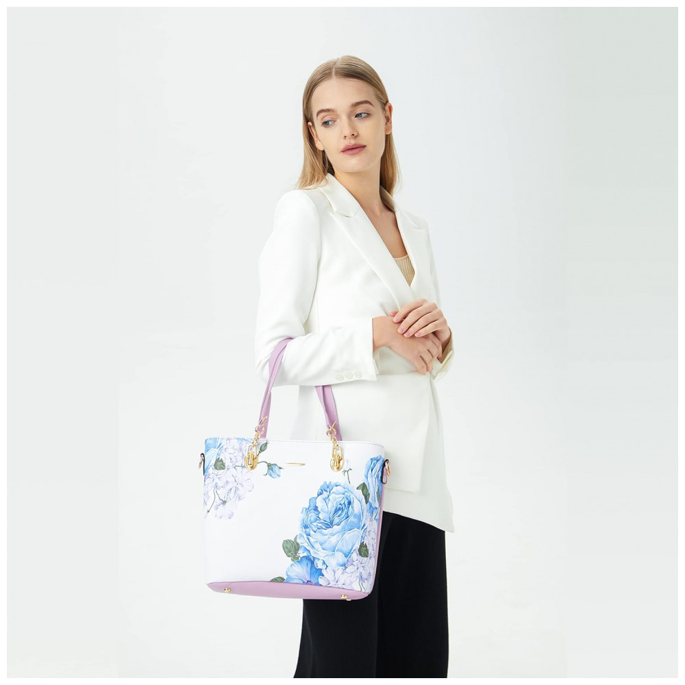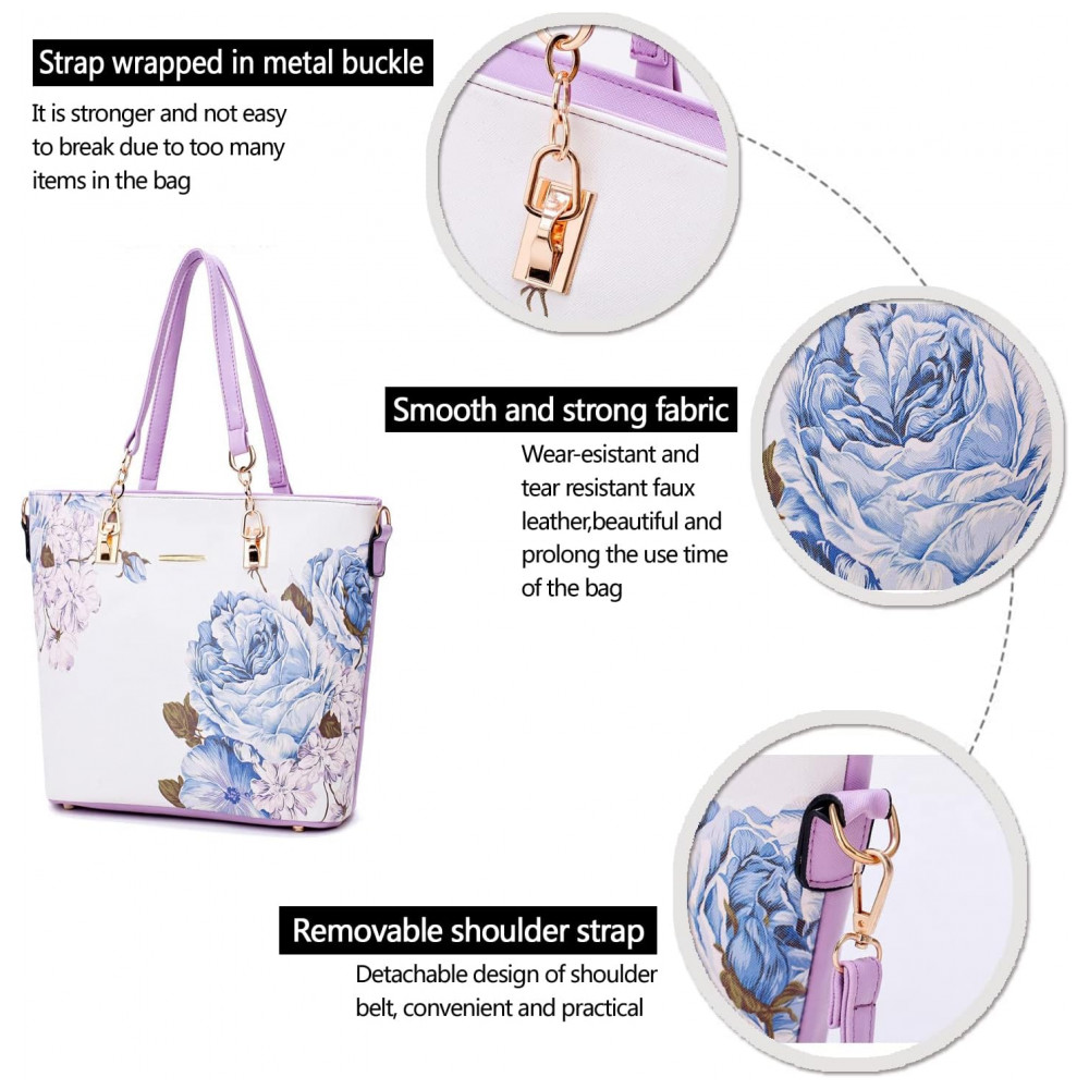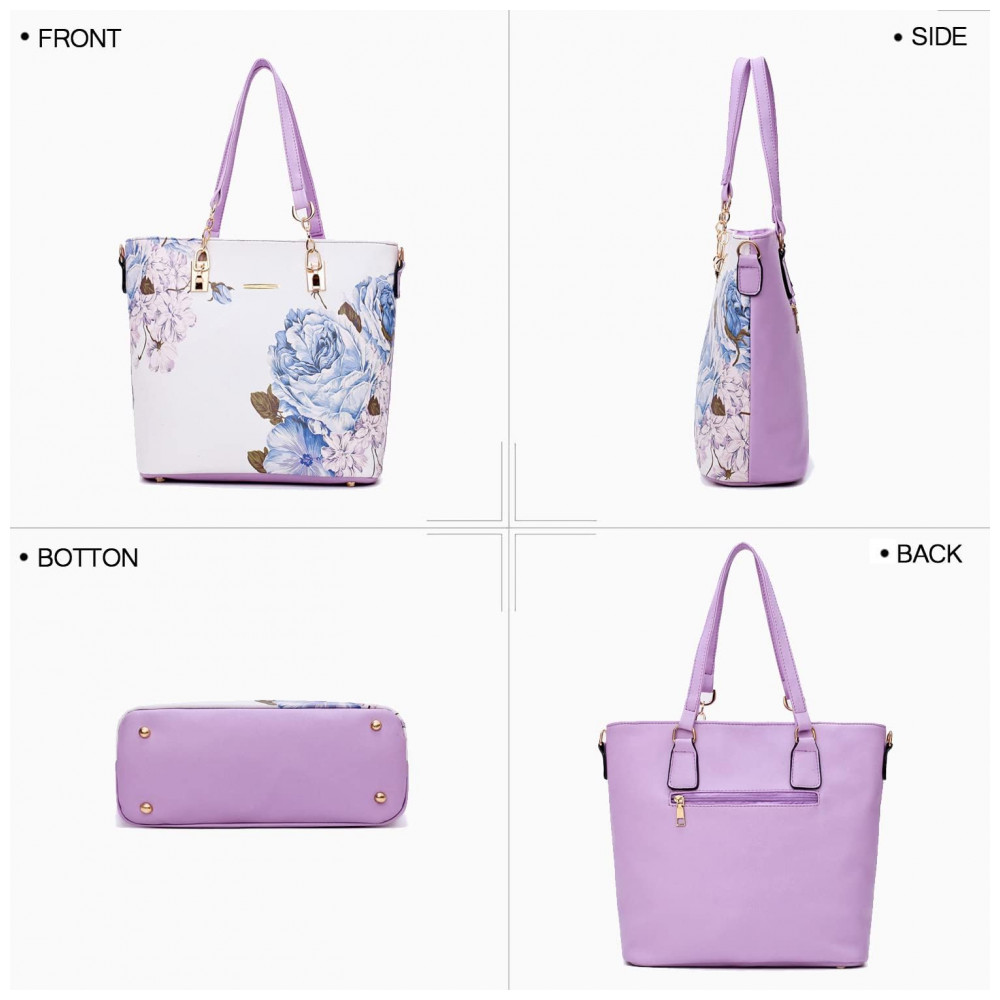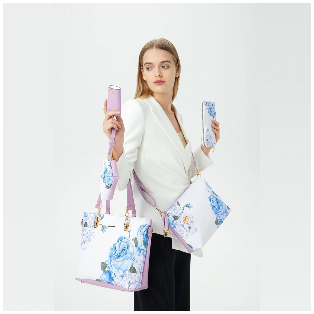 Conjunto de Bolsas Femininas 6 Peças com Carteira 2E youth Lilás e Branca