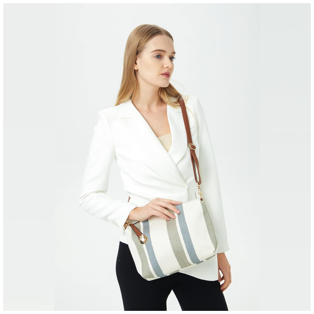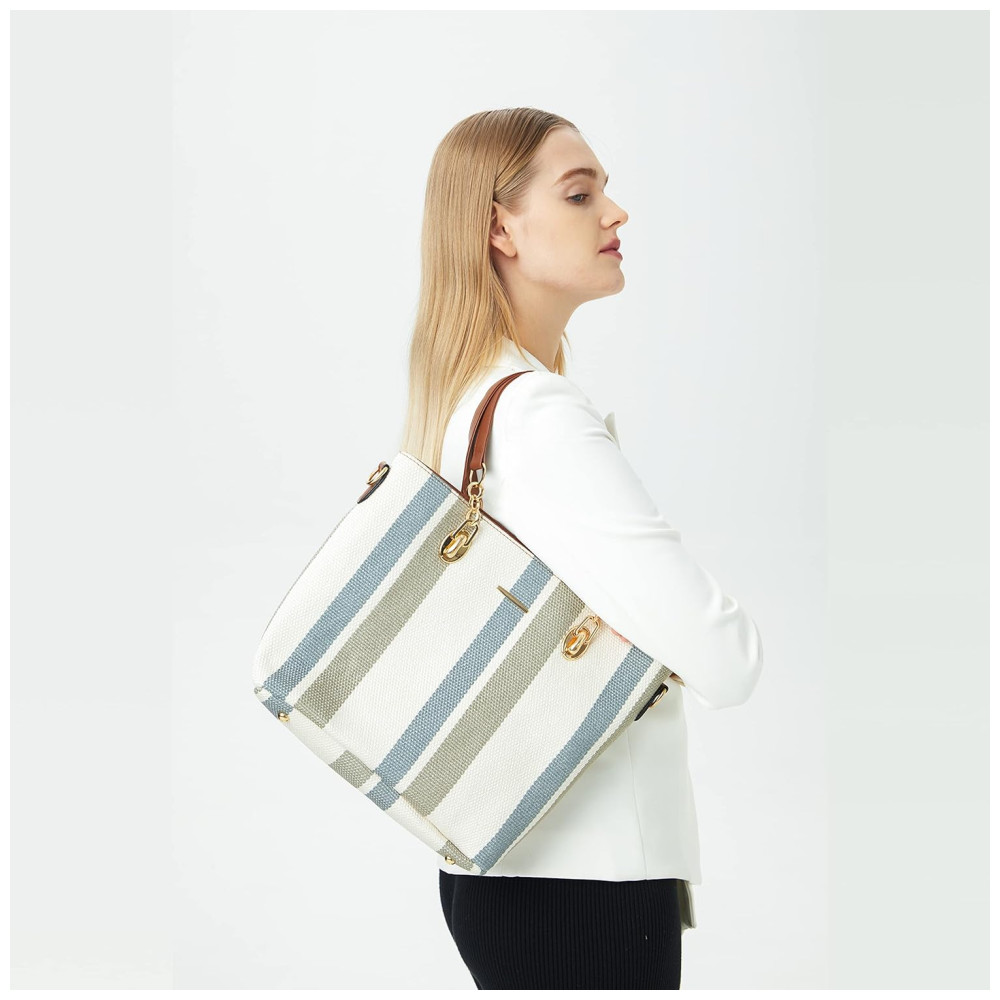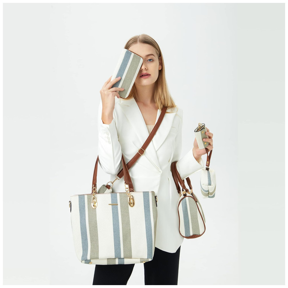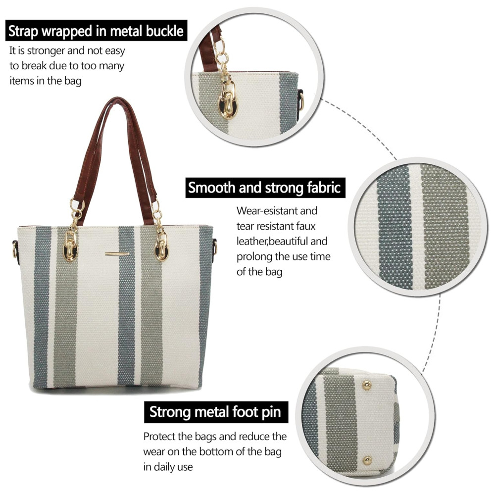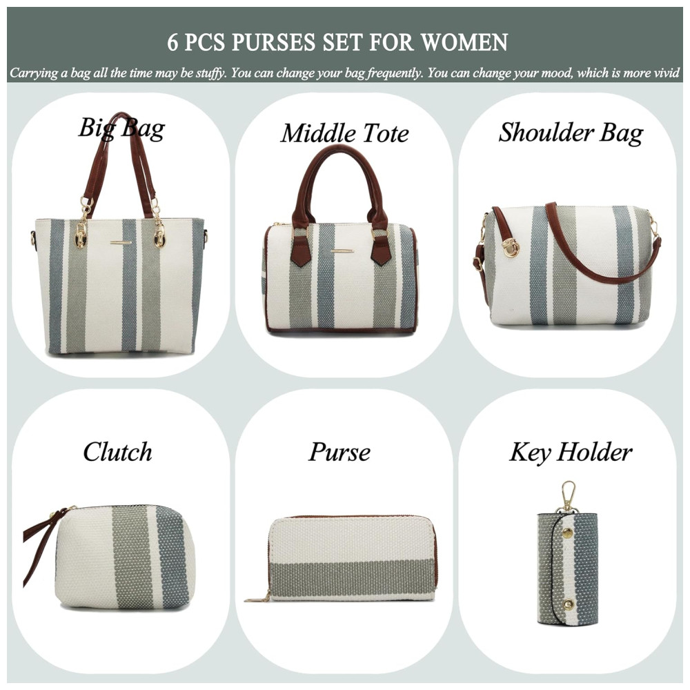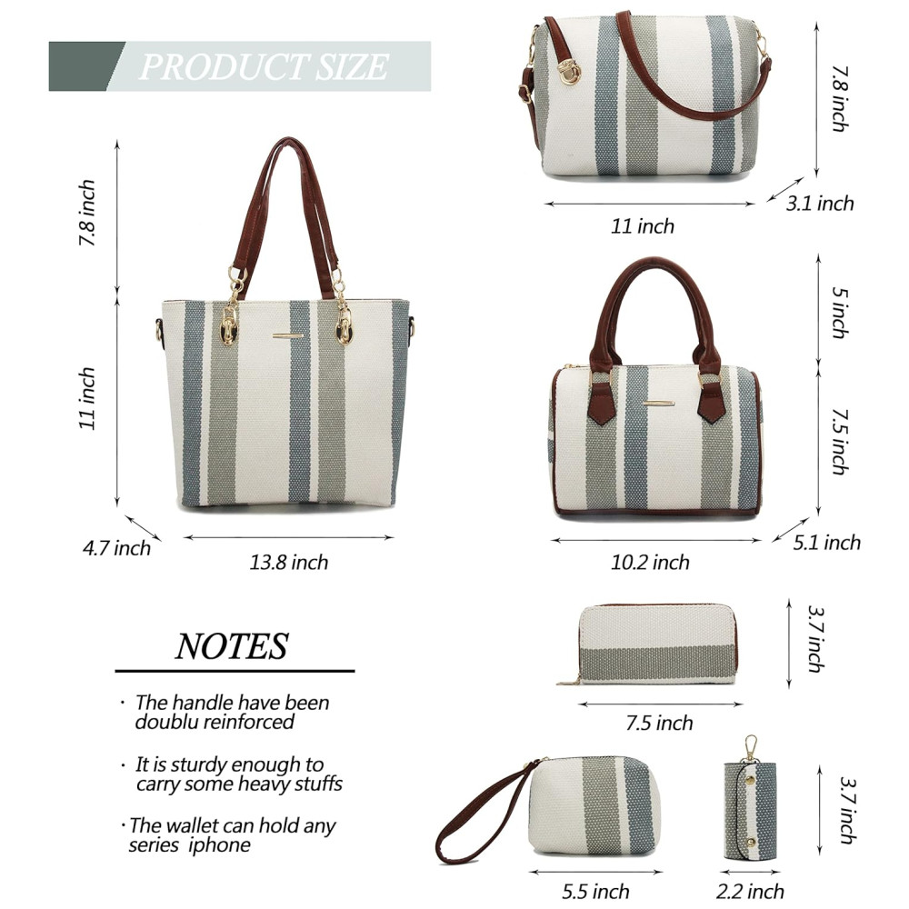 Conjunto de Bolsas Femininas 6 Peças com Carteira 2E youth Listrado Cinza