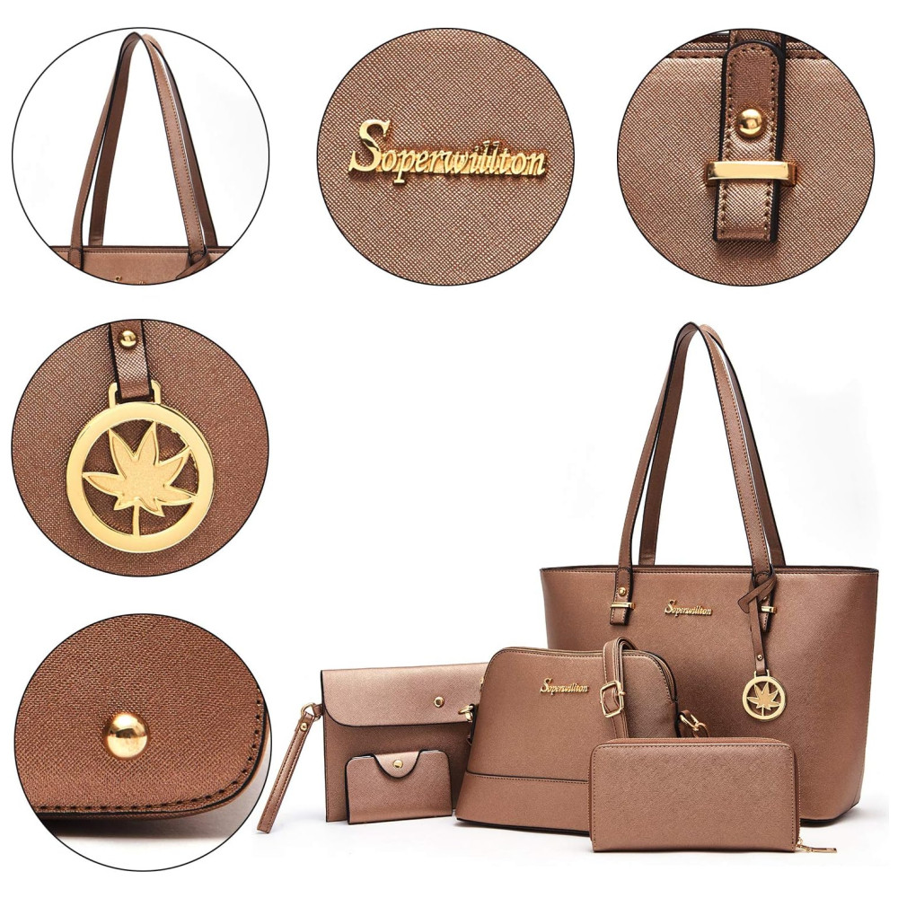 Conjunto de Bolsas Femininas de Couro Sintético 5 Unidades Gold SOPERWILLTON Dourado escuro