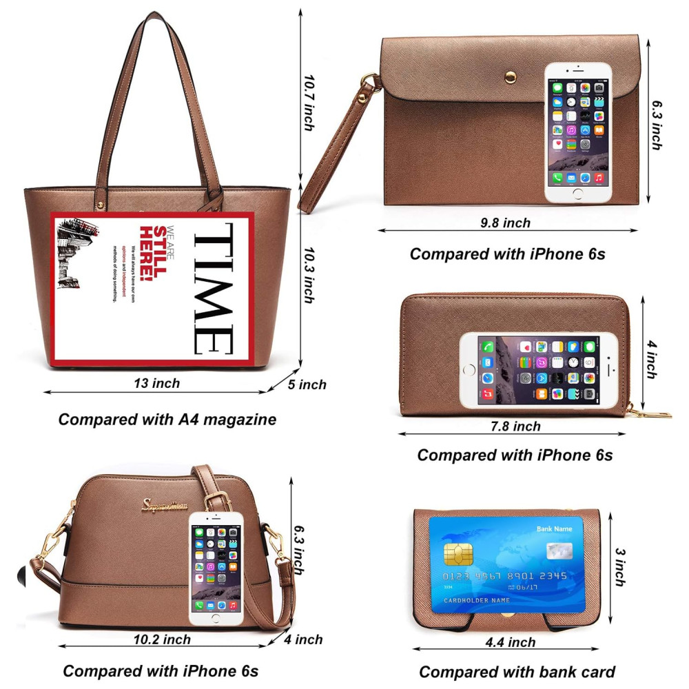 SALA Sacola Um compartimento principal, um bolso interno com zíper e dois bolsos com abertura. 5pcs Bolsa grande bolsa mensageiro carteira carteira titular do cartão. Perfeito para namorar, fazer compras, trabalhar, viajar, vocação, festa e outras ocasiões e manter seus itens diários bem organizados.