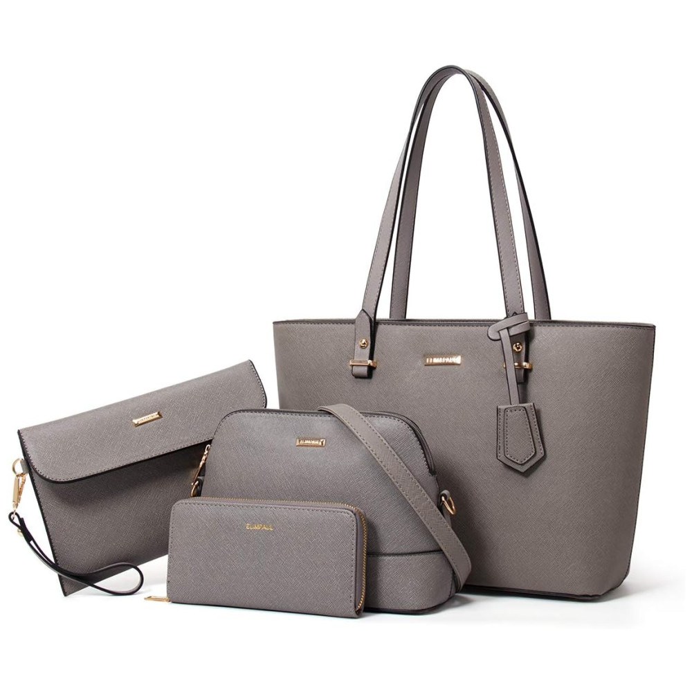 Conjunto de Bolsas Femininas em Couro Sintético 4 Peças com Carteira Lovematch Cinza