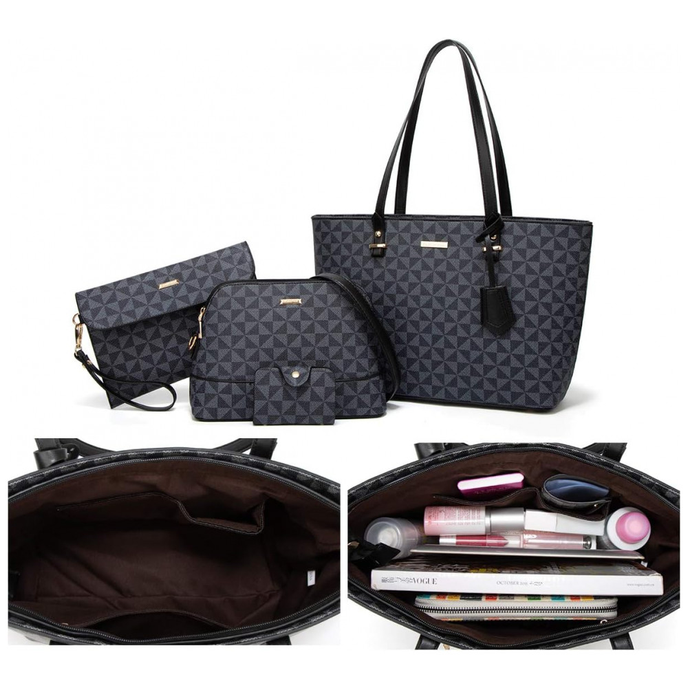 Bolsos Um compartimento principal com zíper, um bolso interno com zíper, um bolso traseiro e dois bolsos embutidos. 4 peças uma bolsa grande uma bolsa mensageiro bolsa carteira porta cartões. Perfeito para namorar, fazer compras, trabalhar, viajar, vocação, festa e outras ocasiões e manter seus itens diários bem organizados.