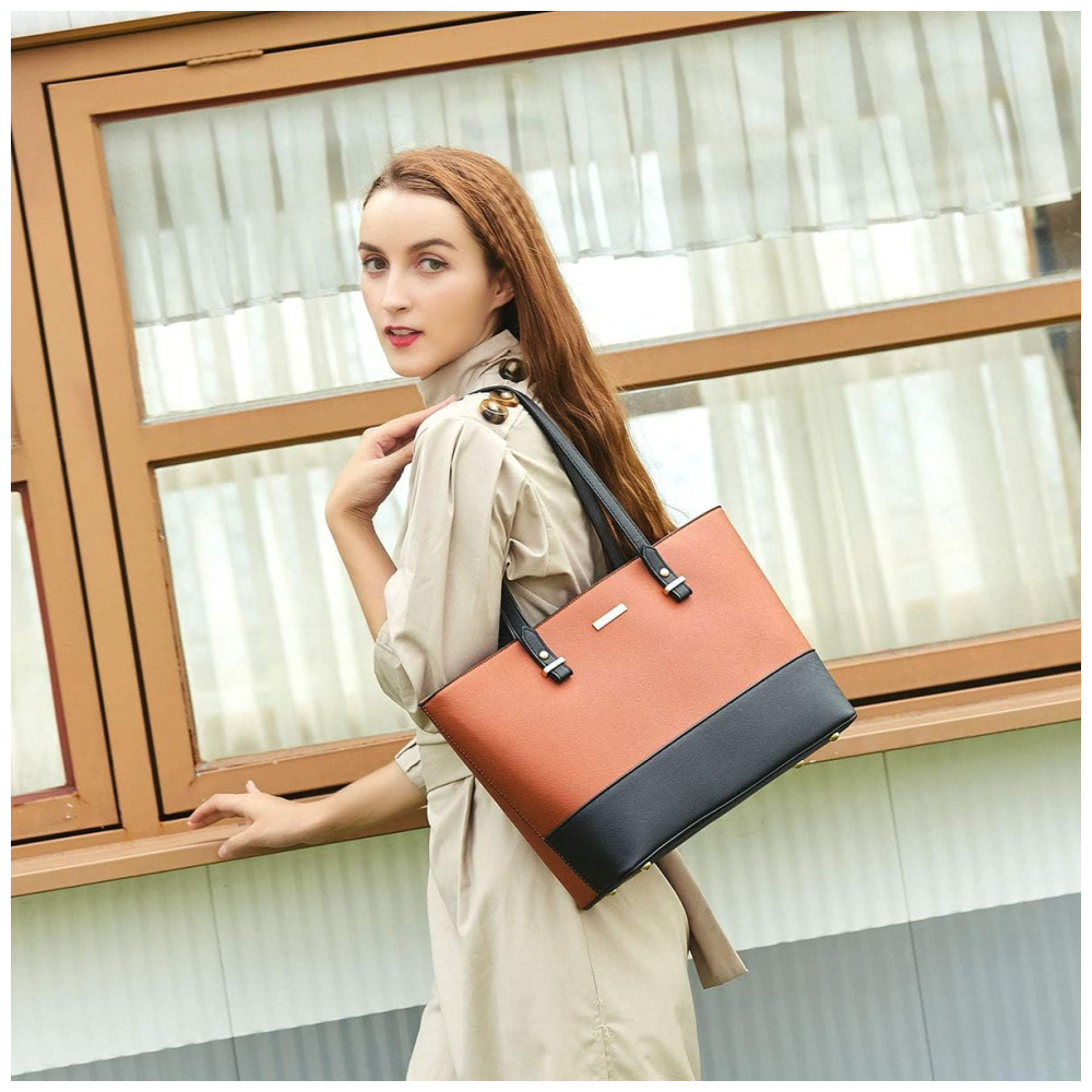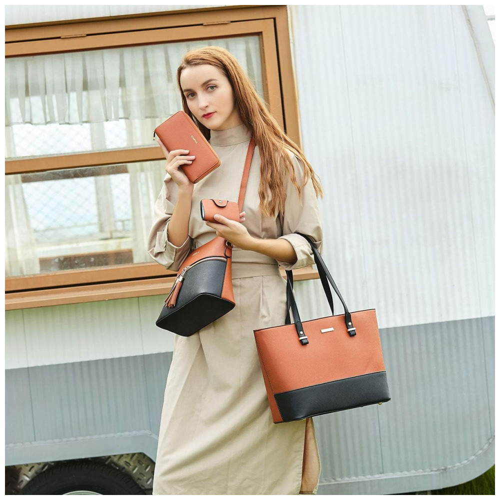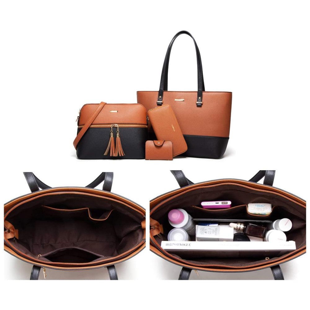 Conjunto de Bolsas Femininas em Couro Sintético 4 Peças com Carteira Lovematch Preto e Marrom