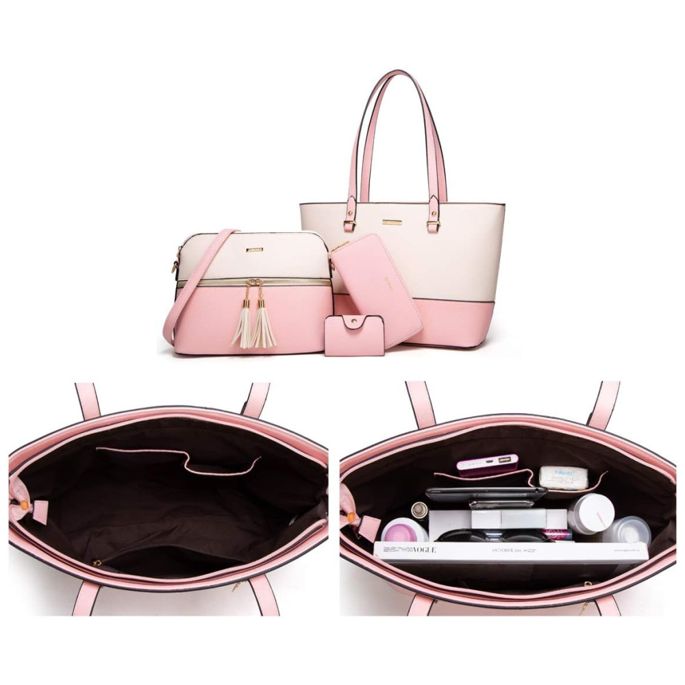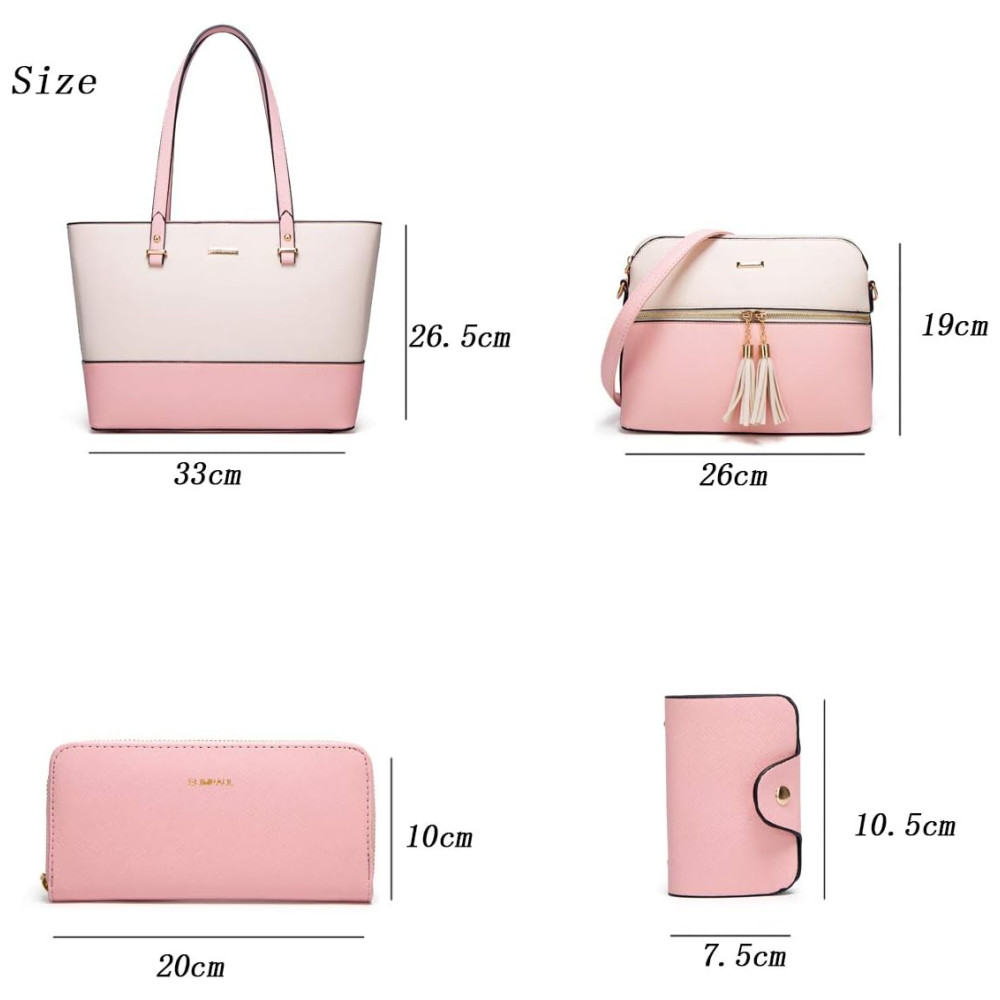 Bolsos para sacola Um compartimento principal com zíper com um bolso interno com zíper, um bolso traseiro e dois bolsos para slot. 4pcs Uma bolsa grande um mensageiro Bolsa carteira suporte para cartão. Perfeito para namoro, compras, trabalho, viagens, vocação, festa e outras ocasiões e mantenha seus itens diários bem organizados.