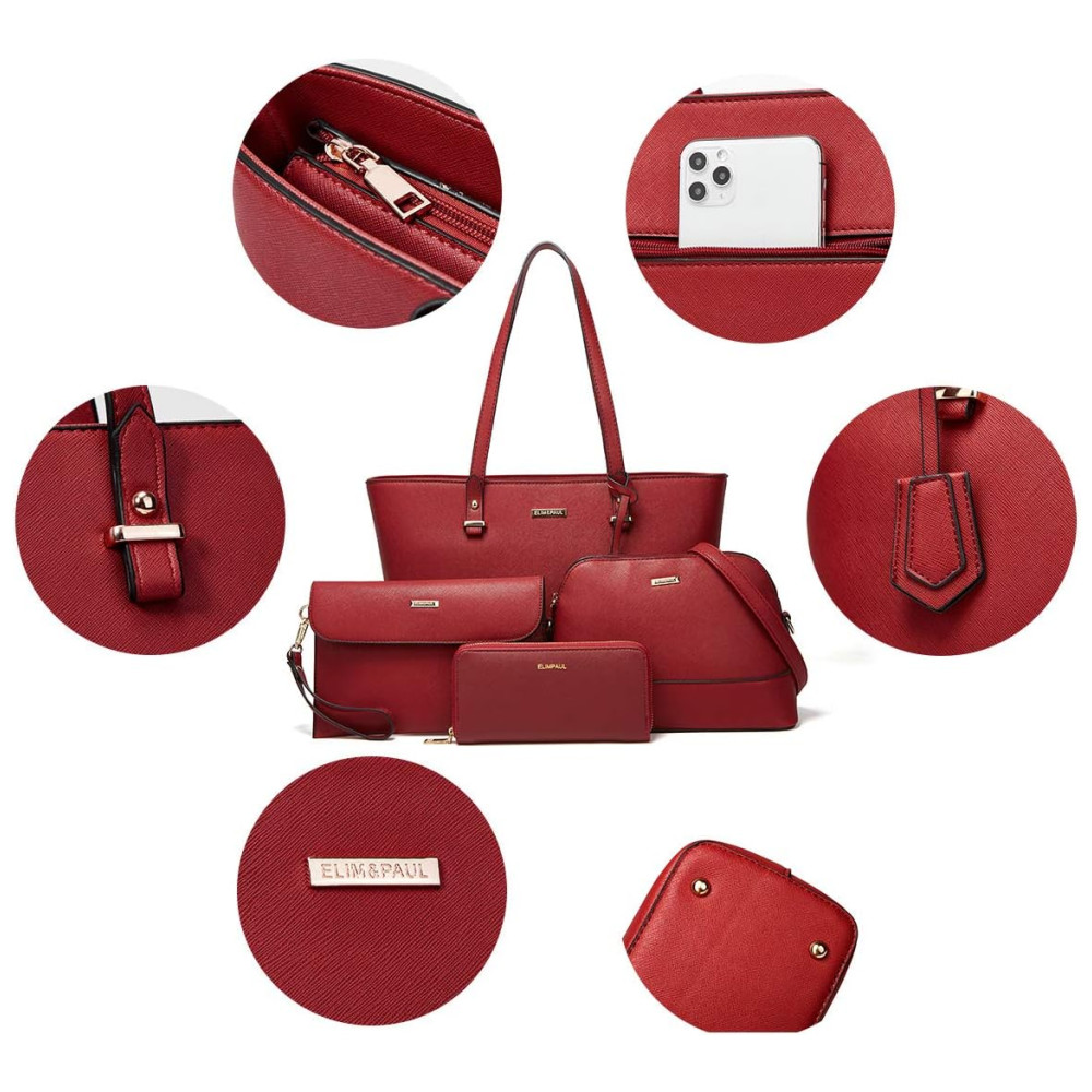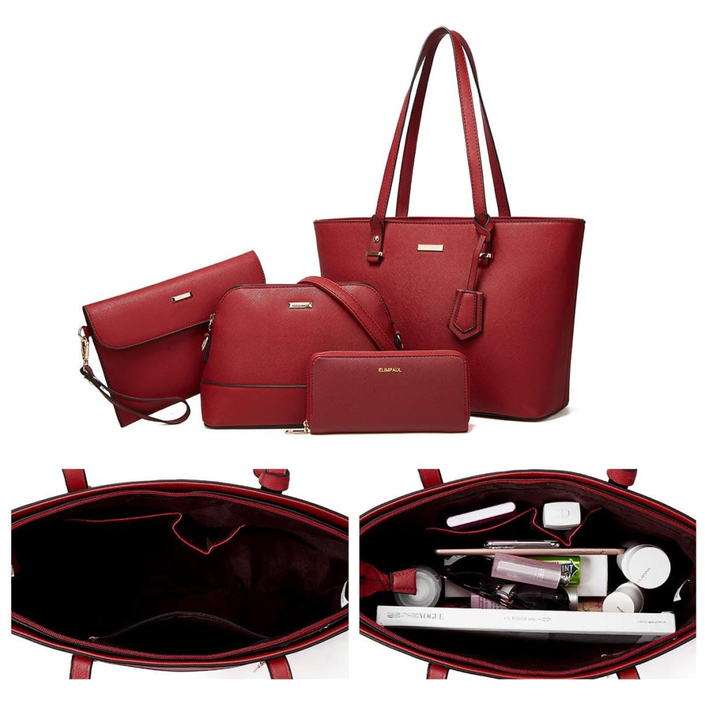 Conjunto de Bolsas Femininas em Couro Sintético 4 Peças com Carteira Lovematch Vermelho