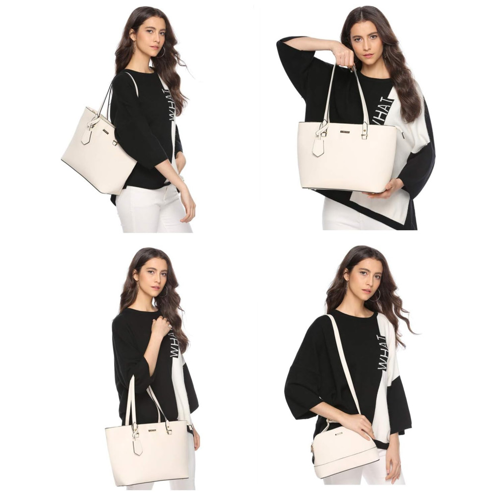Bolsos Um compartimento principal com zíper, um bolso interno com zíper, um bolso traseiro e dois bolsos embutidos. 4 peças uma bolsa grande uma bolsa mensageiro bolsa carteira porta cartões. Perfeito para namorar, fazer compras, trabalhar, viajar, vocação, festa e outras ocasiões e manter seus itens diários bem organizados.