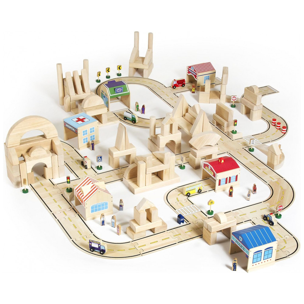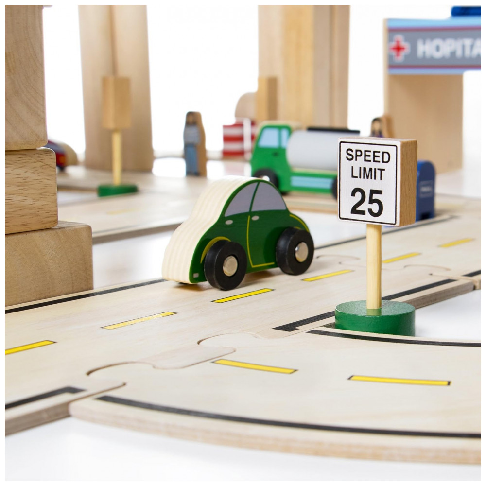 Cada veículo é produzido em compensado de bétula com rodas plásticas, cantos arredondados e superfícies lisas, oferecendo manuseio confortável para mãos pequenas. As dimensões compactas permitem uso sobre mesas, tapetes e circuitos de pistas, além de favorecer o transporte do conjunto entre diferentes espaços de brincar.