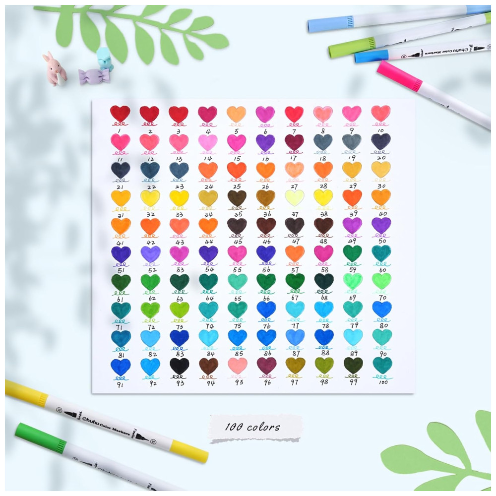 100 CORES VIBRANTES CODIFICADAS COM NÚMEROS PARA ENCONTRAR CORES RAPIDAMENTE: Este conjunto de marcadores de pincel duplo inclui 100 cores vibrantes e cada caneta é numerada para encontrar mais facilmente suas cores preferidas. Além disso, um cartão de amostra de cores DIY em branco está incluído para que você possa editar e organizar as cores de acordo com suas preferências.