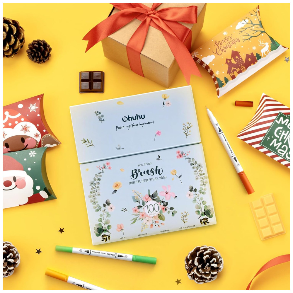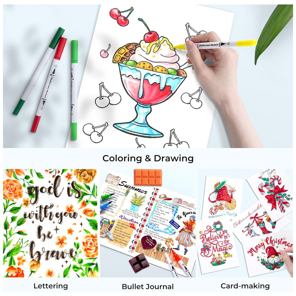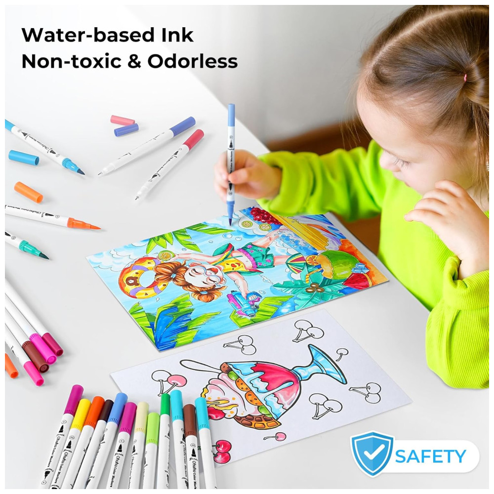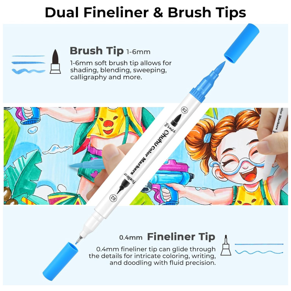 Conjunto de Canetas Artisticas 100 Cores com Pontas Duplas Pincel Fino à Base de Água para Crianças e Adultos Ohuhu Branca