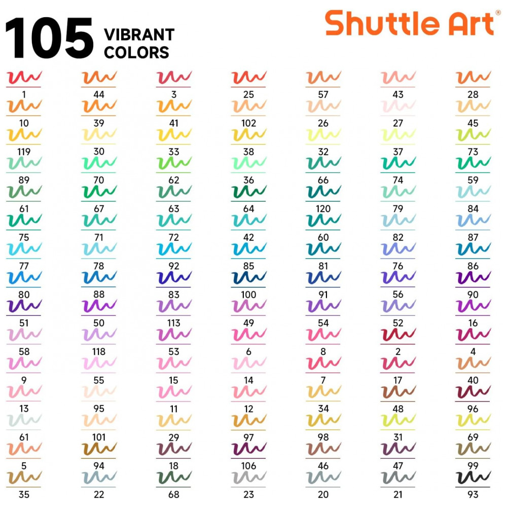 105 CORES ÚNICAS E 1 LIVRO DE COLORIR BÔNUS: O conjunto de canetas pincel de ponta dupla Shuttle Art tem 105 cores vibrantes, que despertarão seu interesse em caligrafia, sublinhado, desenho, rabiscos e letras à mão. OUTRO livro de colorir será fornecido para relaxamento.