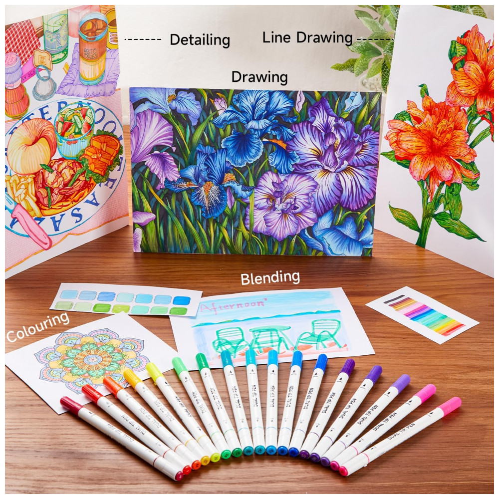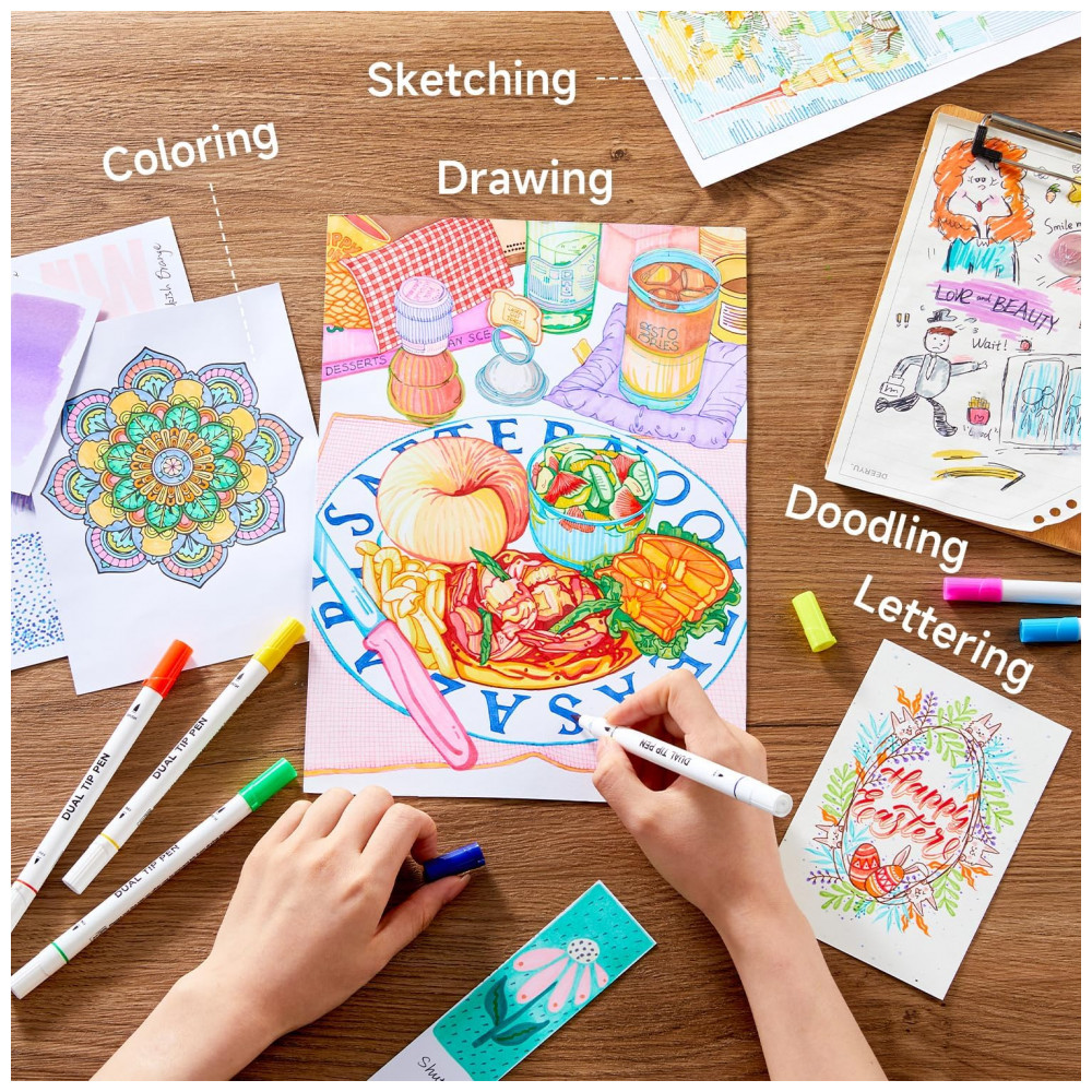Conjunto de Canetas Artisticas 105 Cores com Ponta Dupla Eestojo e 1 Livro de Colorir para Crianças Shuttle Art