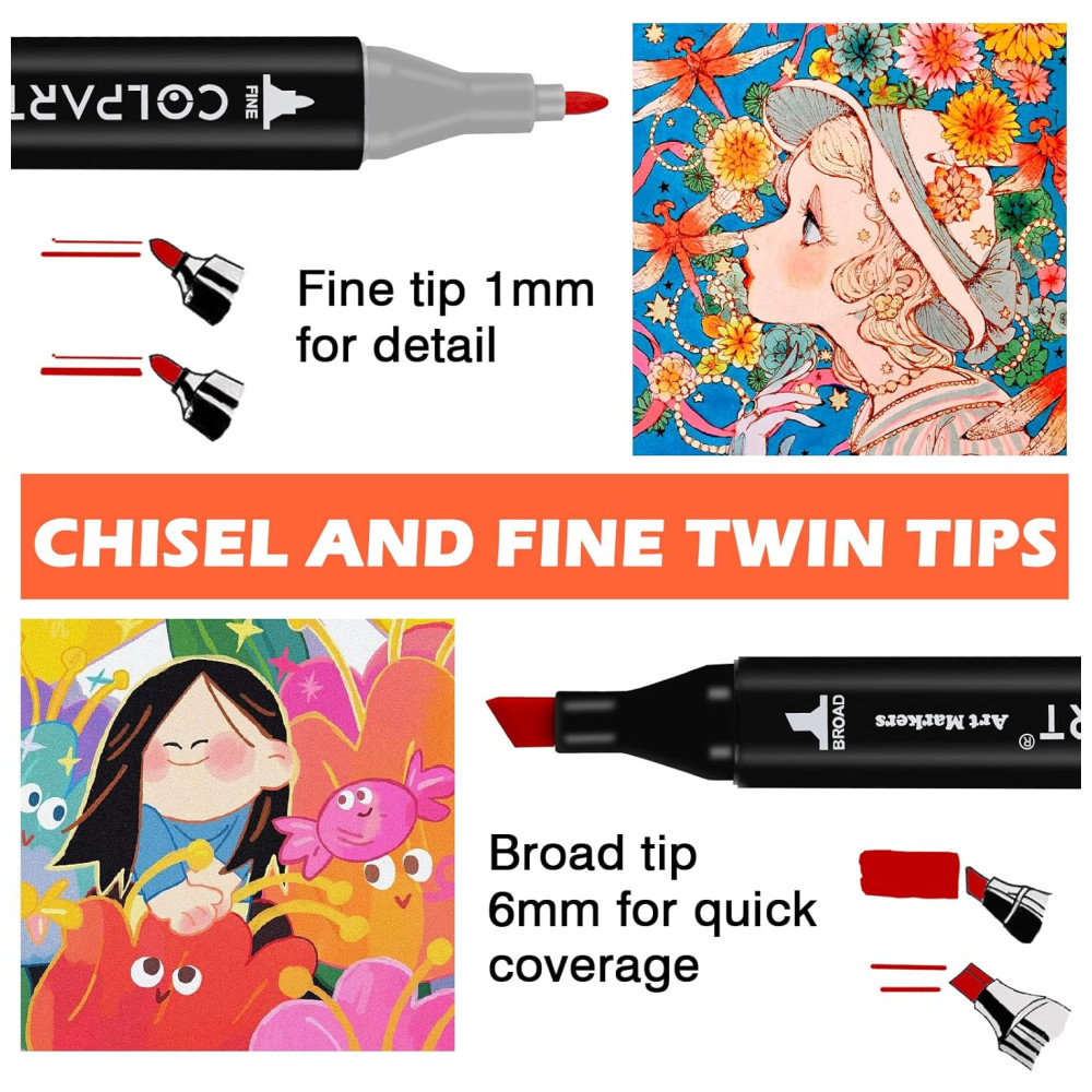 Marcadores de álcool de pontas duplas O design de marcadores de arte de pontas duplas permite que você faça linhas grossas e finas sem alterar os marcadores. Inclui pontas duplas de ponta fina de e ponta larga de para realce, esboço e sublinhado precisos. Marcadores finos podem ser s para escrever e prender linhas, enquanto marcadores de arte grossos profissionais são adequados para desenhar e colorir.