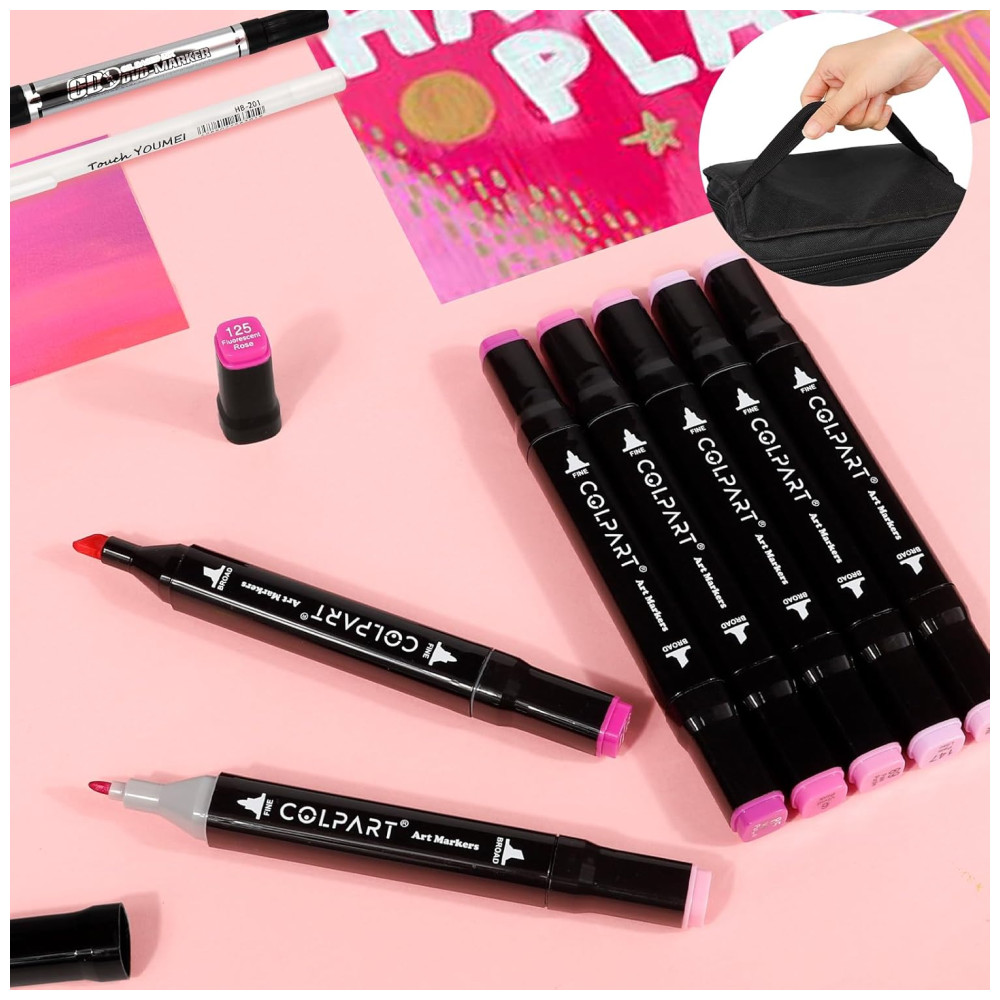 Marcadores de arte portáteisOs materiais de arte vêm com uma bolsa de transporte com zíper para zenamento. Faça com que os marcadores de álcool sejam muito fáceis e convenientes para transportar portátil para qualquer lugar que você quiser, especialmente para viagens ou trabalho ao ar livre. guardar os marcadores de álcool quando não estiver em uso, evitando que seja extraviado ou danificado.