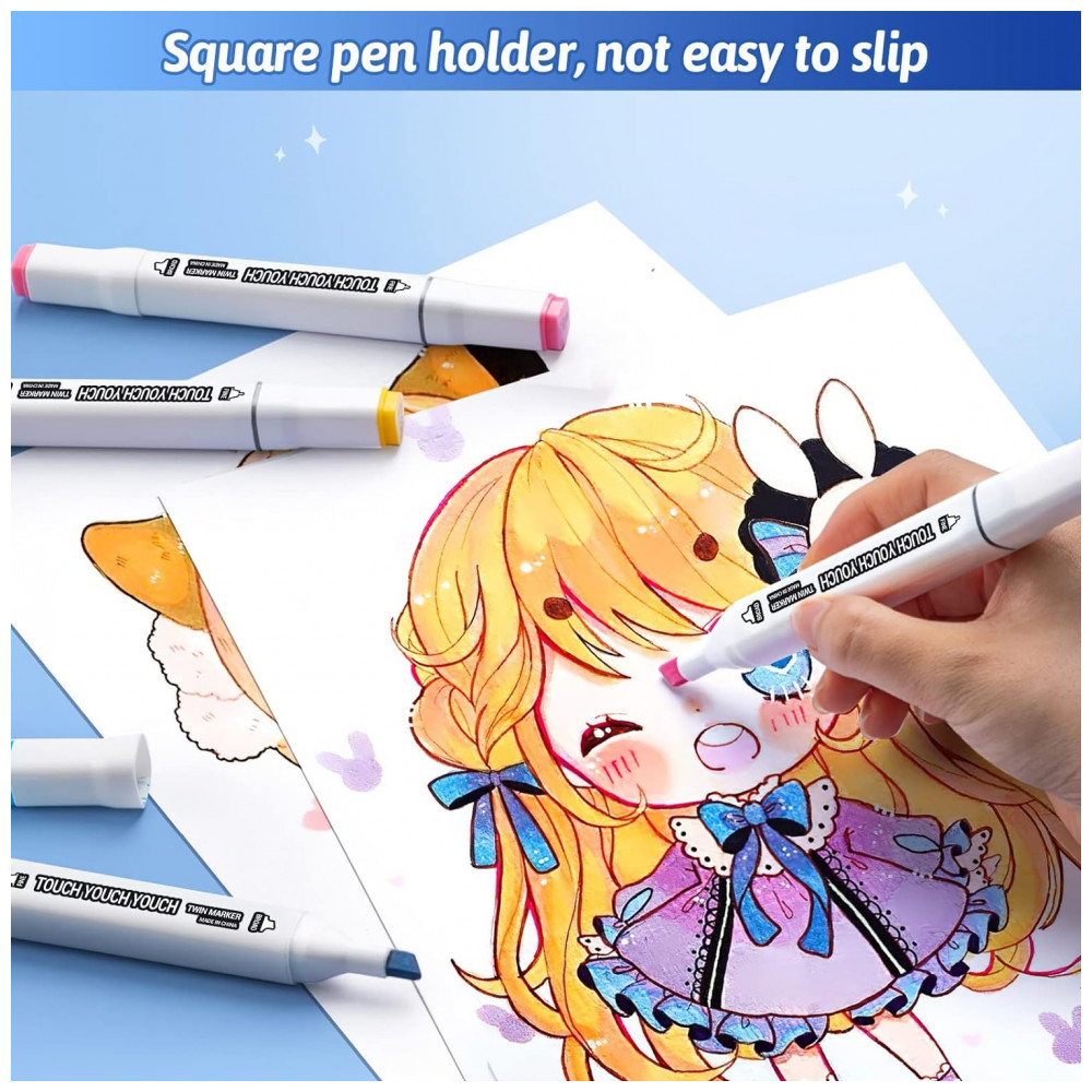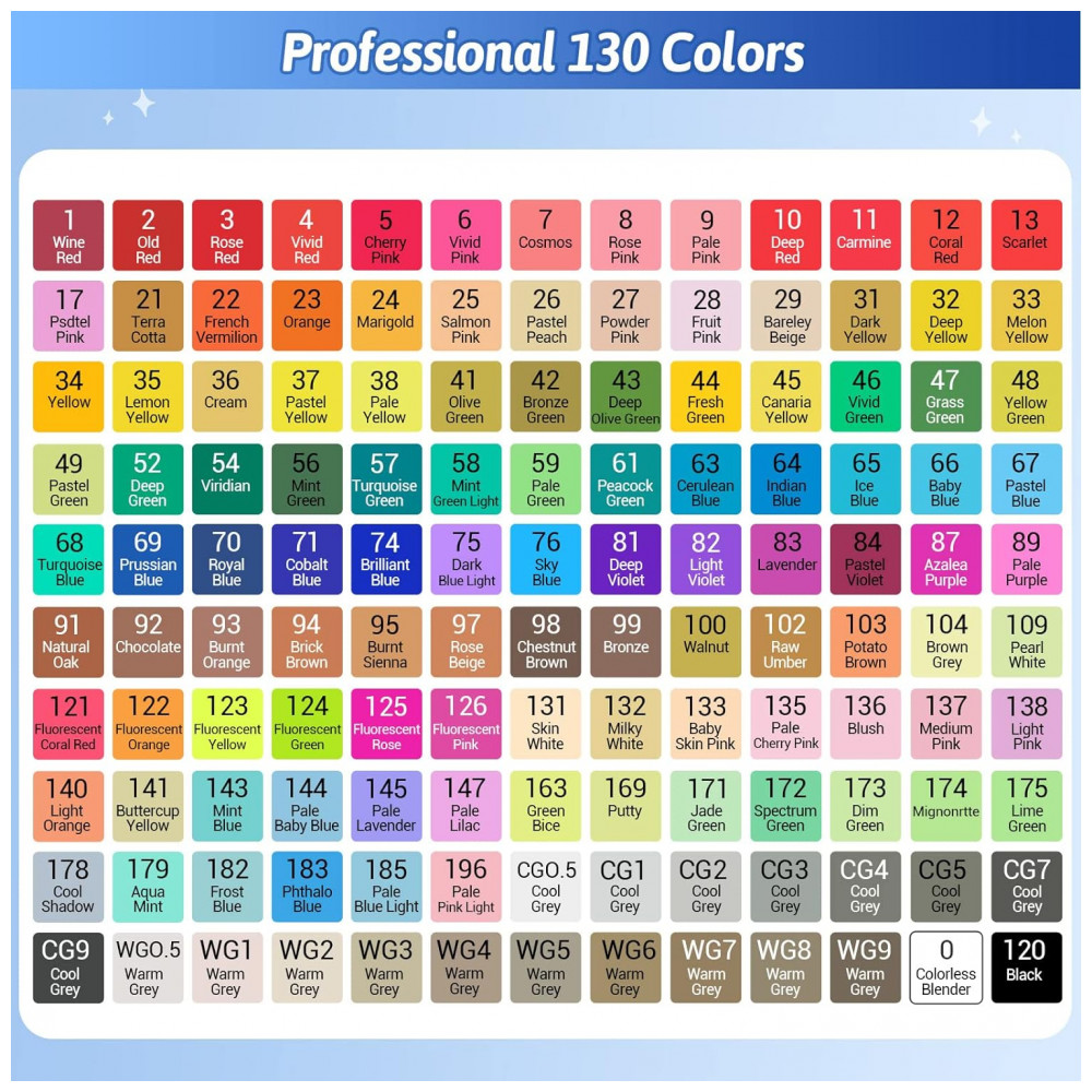 Conjunto de Canetas Artisticas 130 cores com Ponta Dupla e à Base de Álcool para Crianças e Adultos Tommax