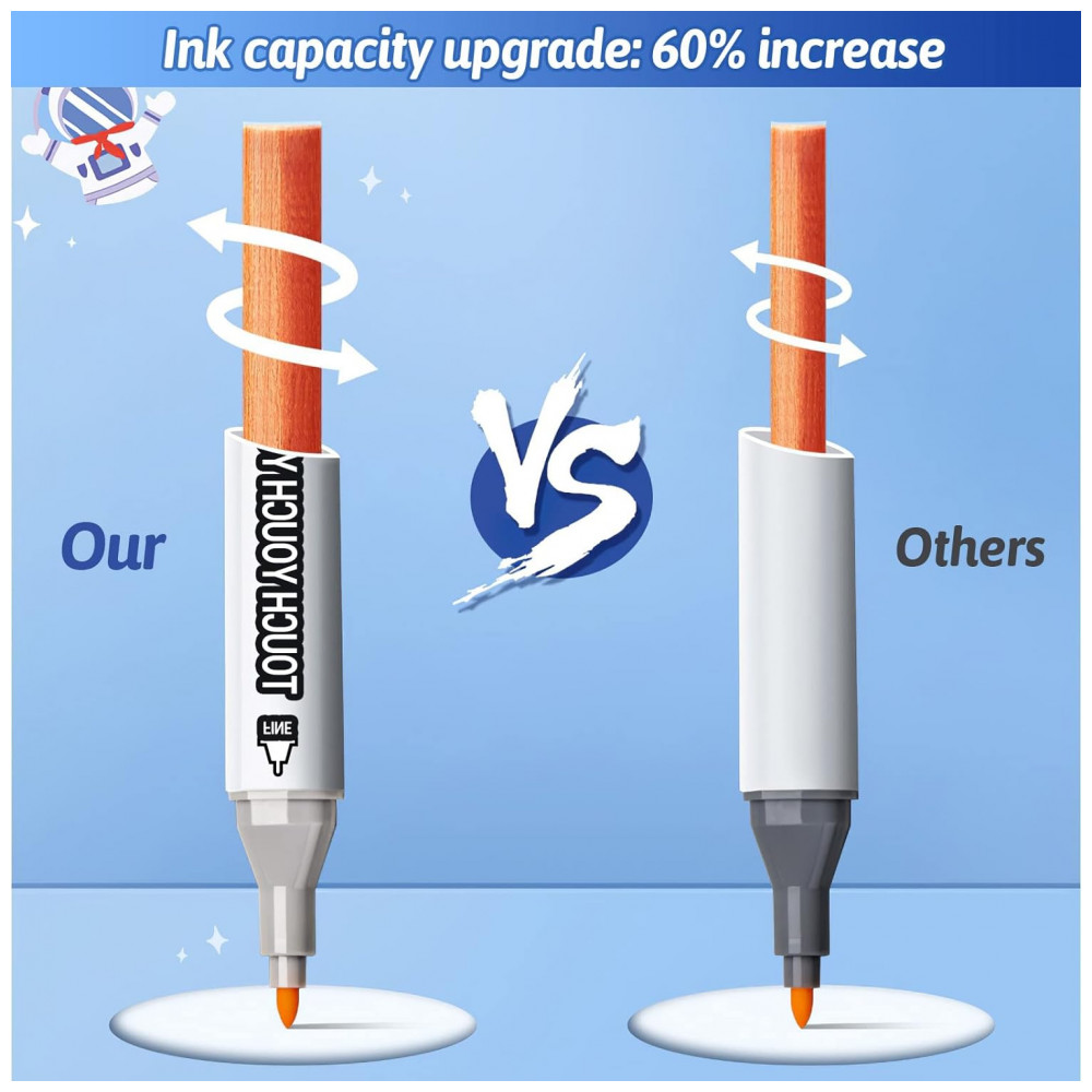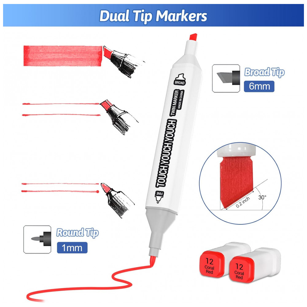 Marcadores de álcool de ponta dupla exclusivos: Marcadores de álcool com dois tipos de pontas, uma ponta fina cerca de para linhas precisas e uma ponta larga cerca de para cores planas, para atender a todas as suas necessidades de pintura.