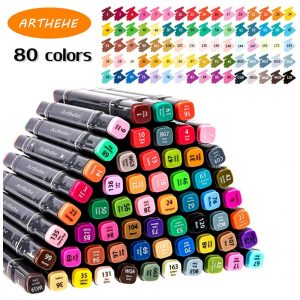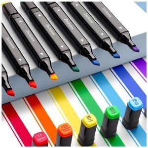 Conjunto de Canetas Artisticas 130 cores com Ponta Dupla e à Base de Álcool para Crianças e Adultos Tommax