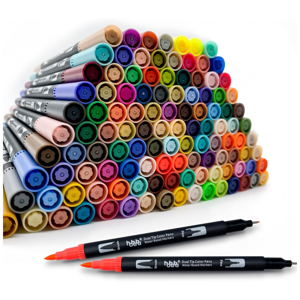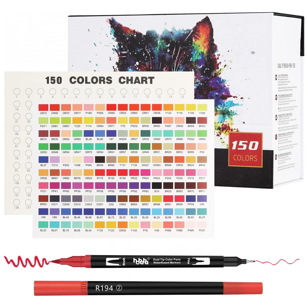 Conjunto de Canetas Artisticas 150 Cores com Ponta Pincel para Crianças e Adulto Hhhouu HO150B Preta