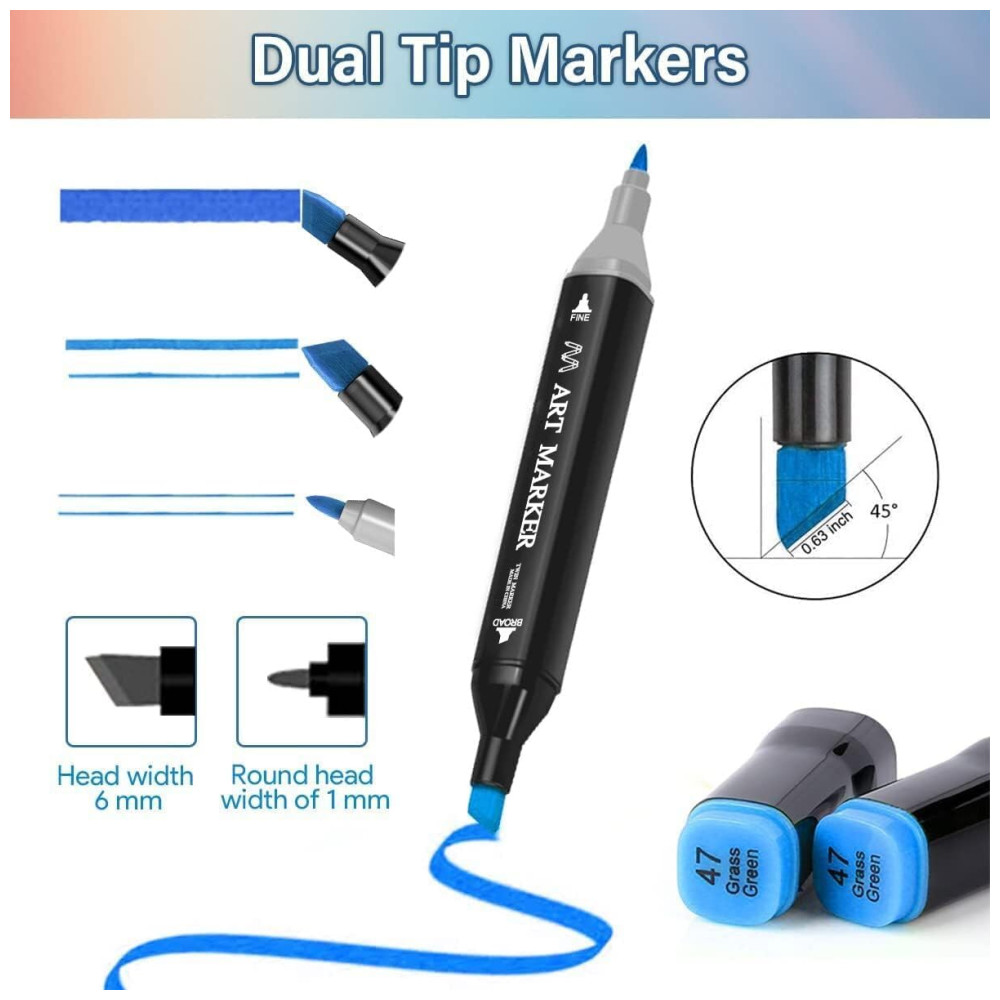 Marcadores de álcool de ponta dupla exclusivos: Marcadores de álcool com dois tipos de pontas, uma ponta fina cerca de para linhas precisas e uma ponta larga cerca de para cores planas, para atender a todas as suas necessidades de pintura.