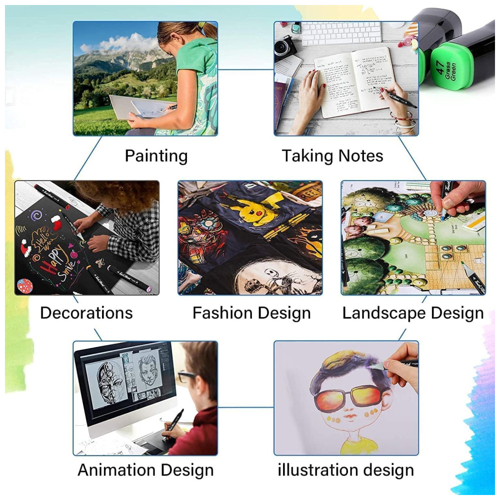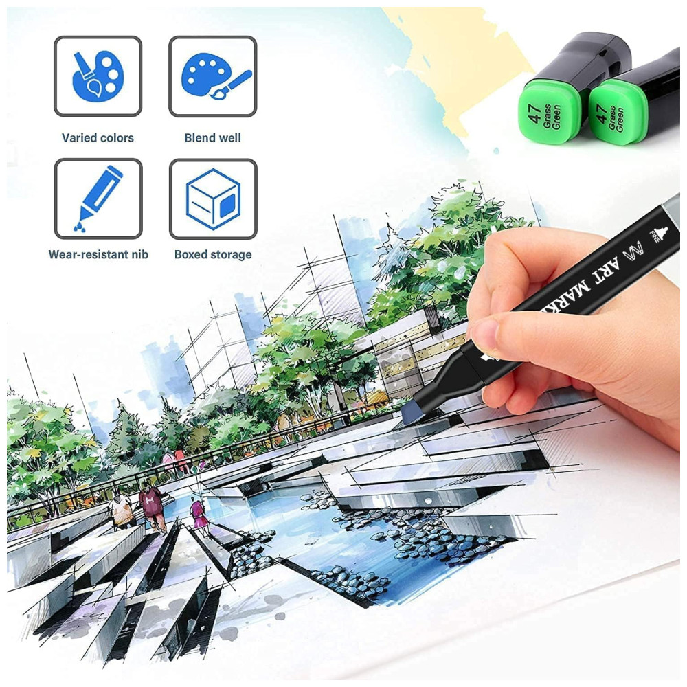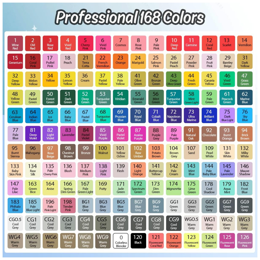 Conjunto de Canetas Artisticas 168 cores com Ponta Dupla e à Base de Álcool para Crianças e Adultos Tommax