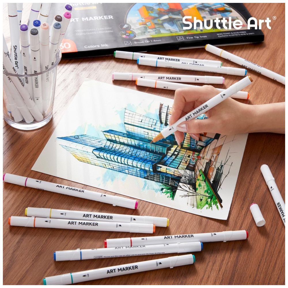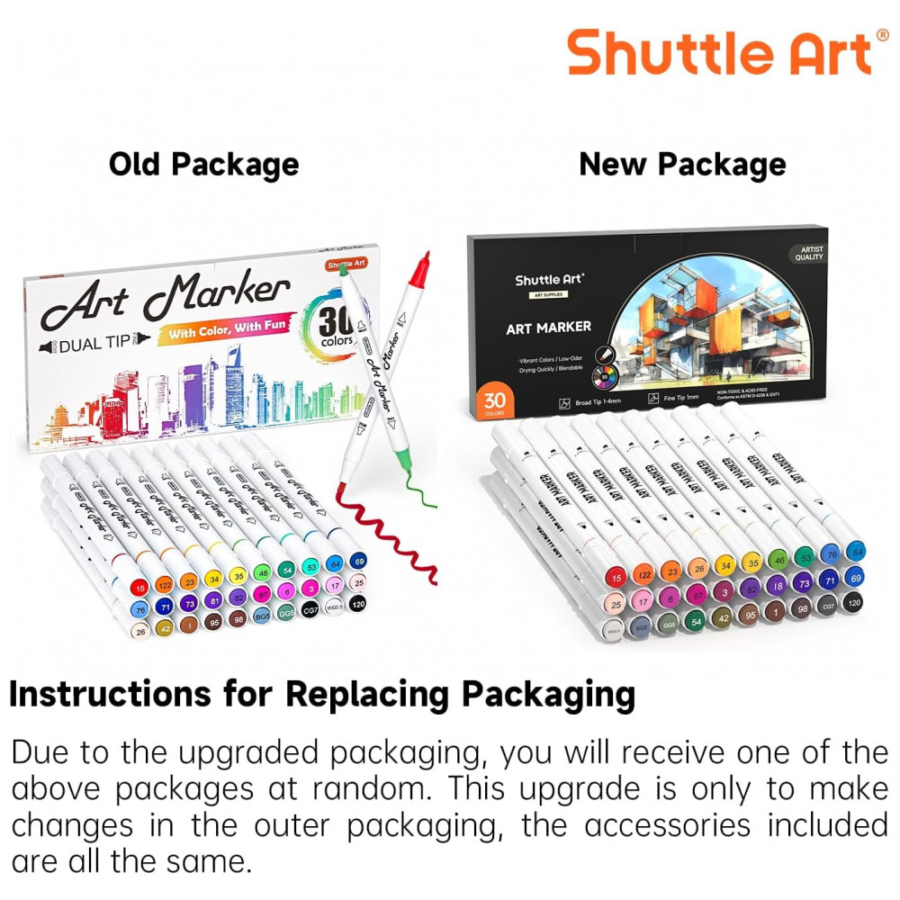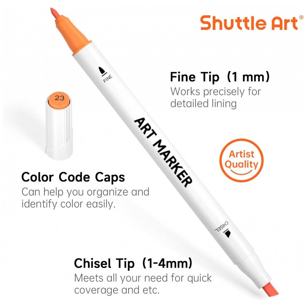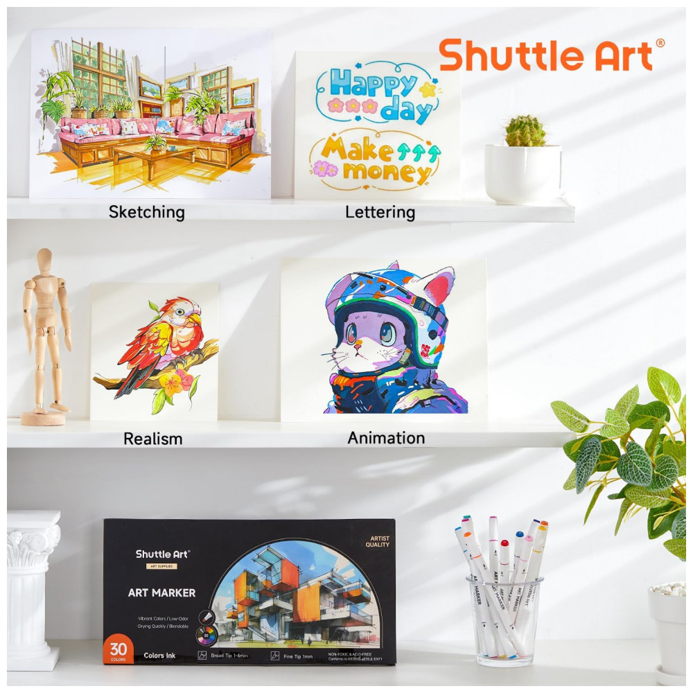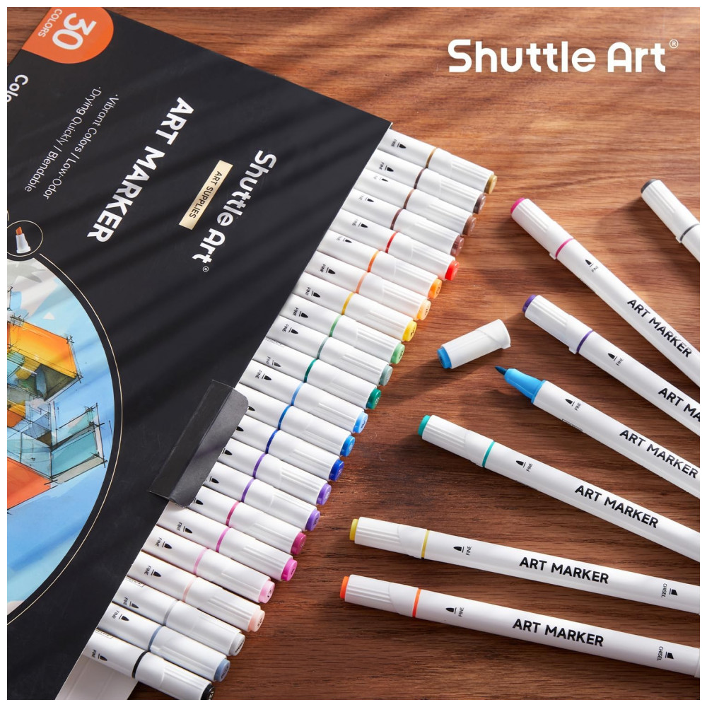 MÚLTIPLAS CORES: O conjunto de marcadores de arte Shuttle Art 30 cores oferece 30 cores exclusivas atraentes e vibrantes, incluindo todas as cores primárias que você pode precisar para sua criação artística, e pode ser bem misturado para adicionar dimensão à sua arte.