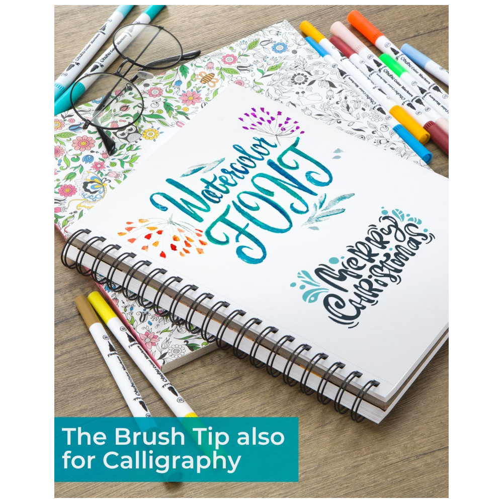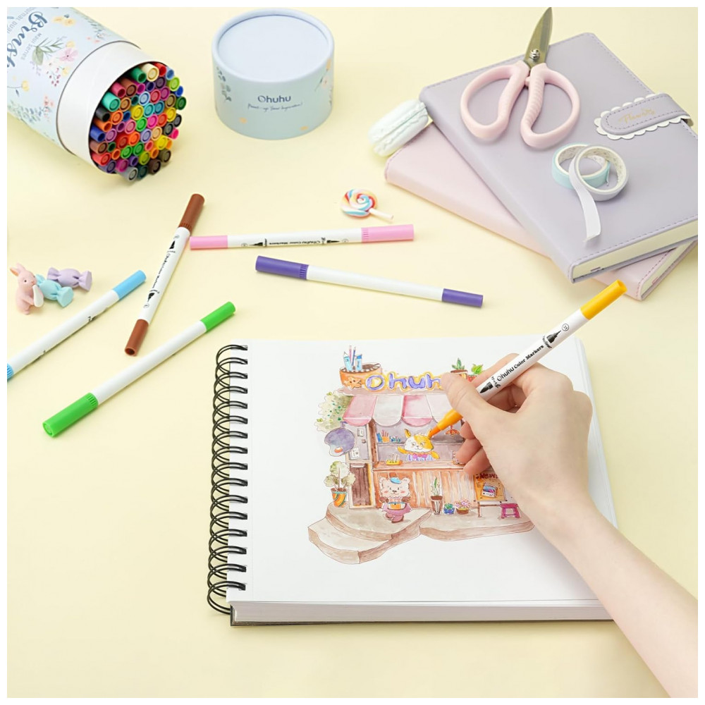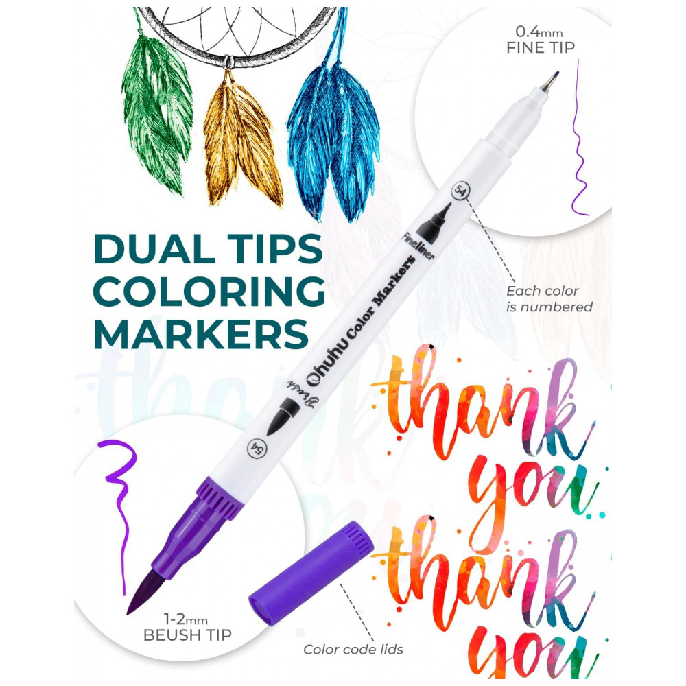 Conjunto de Canetas Artisticas 60 Cores com Pontas Duplas Pincel Fino à Base de Água para Crianças e Adultos Ohuhu Branca