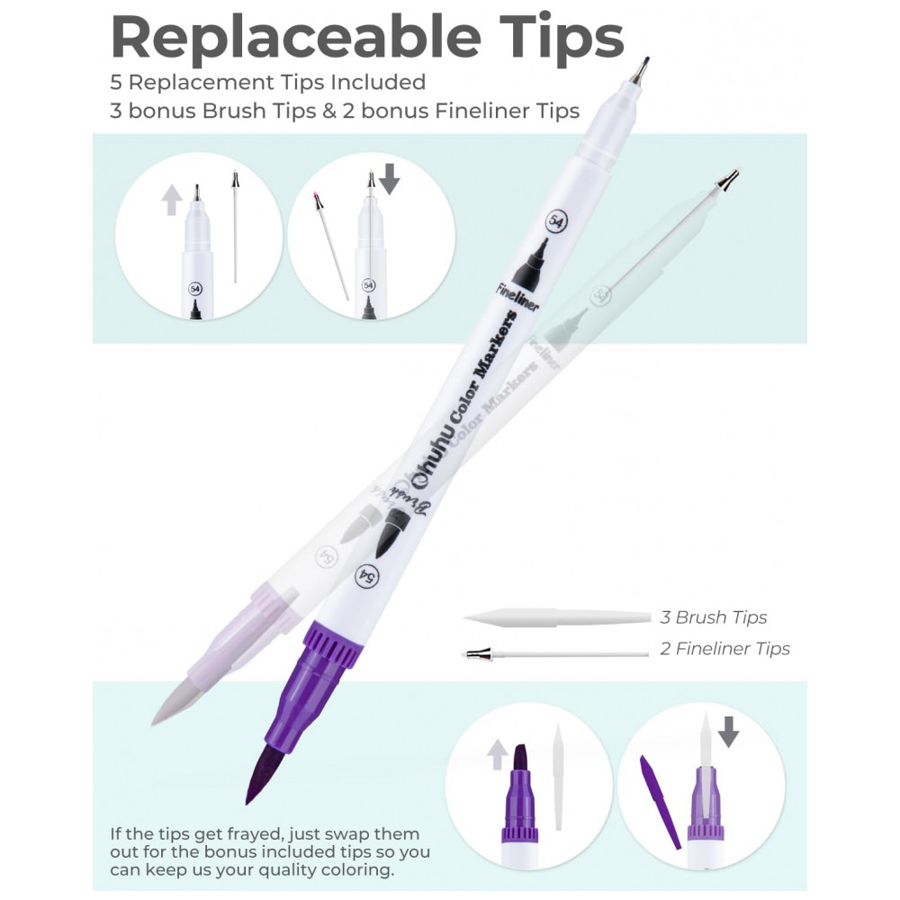 O QUE VOCÊ RECEBERÁ: Cada pacote inclui 3 pontas de pincel de reposição, 2 pontas finas e um cartão de amostra de cor numérica pré impresso para sua conveniência. Além disso, com embalagem requintada e delicada, os marcadores de desenho Ohuhu são uma escolha de presente perfeita para aniversário, Natal, dia dos namorados, volta às aulas ou apenas um presente aleatório
