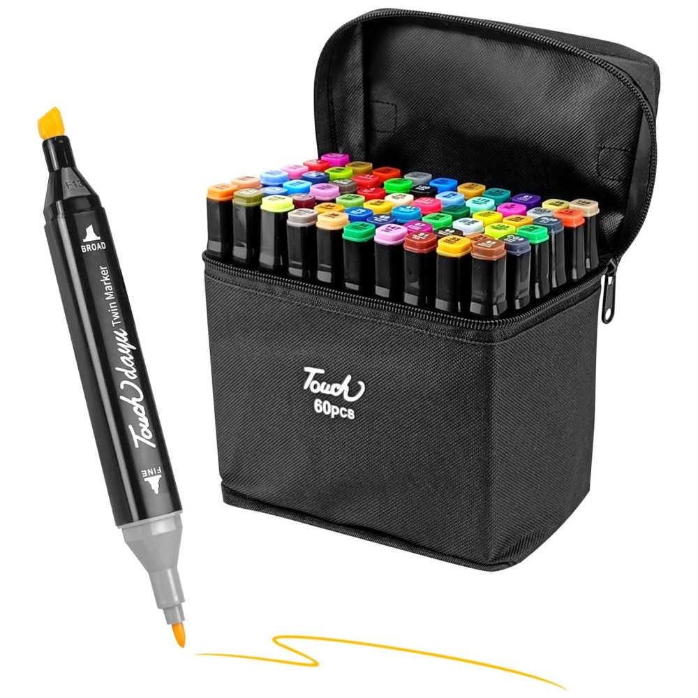 Conjunto de Canetas Artisticas 60 Cores de Pontas Duplas para Crianças e Adultos GCVOPTON