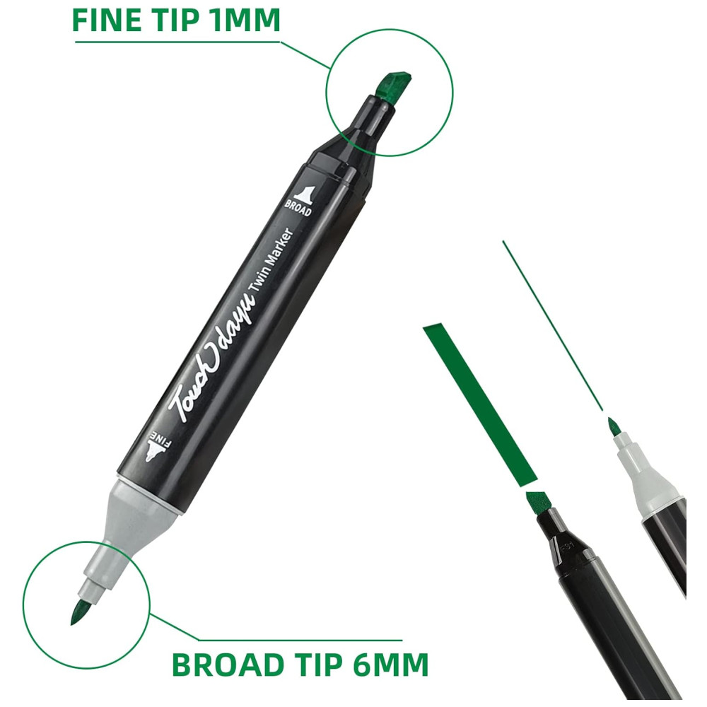 O conjunto de marcadores design de ponta dupla inclui cinzel largo cerca de ponta fina cerca de . O cinzel largo é adequado para espalhar e colorir grandes áreas, preencher rapidamente áreas em branco e pode ser para escrever, esboçar, detalhar e delinear.