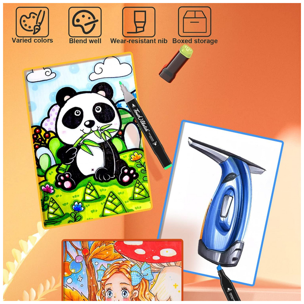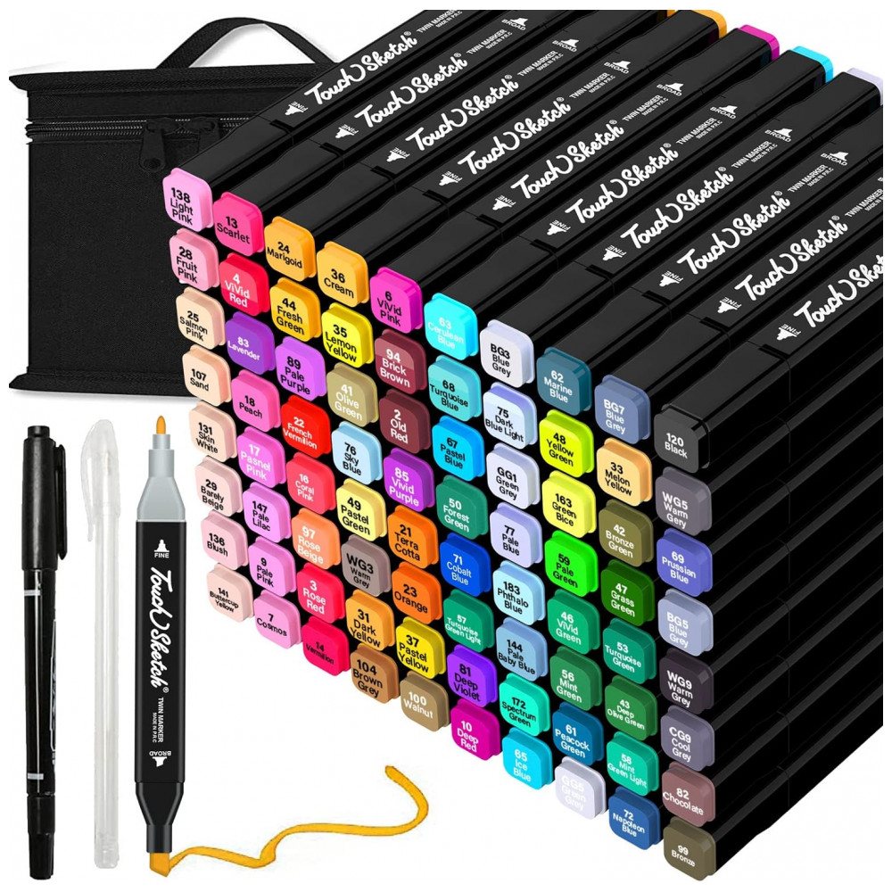 Conjunto de Canetas Artisticas 80 cores com Ponta Dupla e à Base de Álcool para Crianças e Adultos Tommax