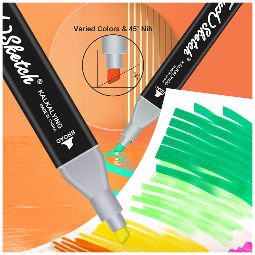 Marcadores de álcool de ponta dupla exclusivos: Marcadores de álcool com dois tipos de pontas, uma ponta fina cerca de para linhas precisas e uma ponta larga cerca de para cores planas, para atender a todas as suas necessidades de pintura.
