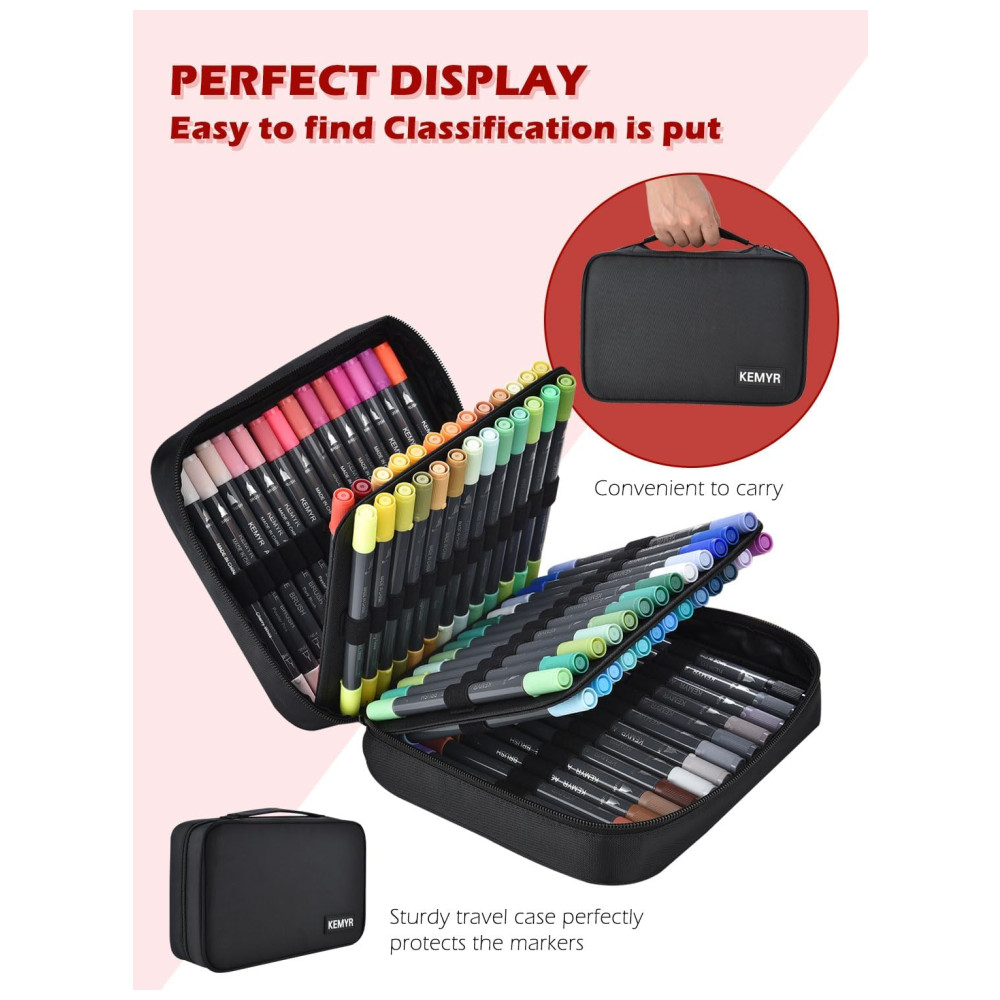 Conjunto de Canetas Artisticas 80 Cores com Ponta Fina e Ponta de Pincel para Crianças e Adultos KEMYR