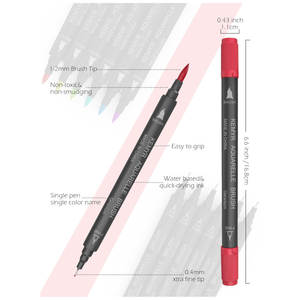 PROJETO DE PONTA DUPLA A ponta fina de 0, é adequada para desenhar linhas relativamente finas, você pode usá la para escrever registros e alguns rascunhos de linhas projetados. A ponta do pincel de 1 é mais adequada para colorir, caligrafia e adicionar cor a alguns rascunhos de design. O design da ponta dupla torna o processo de desenho mais conveniente e fácil.
