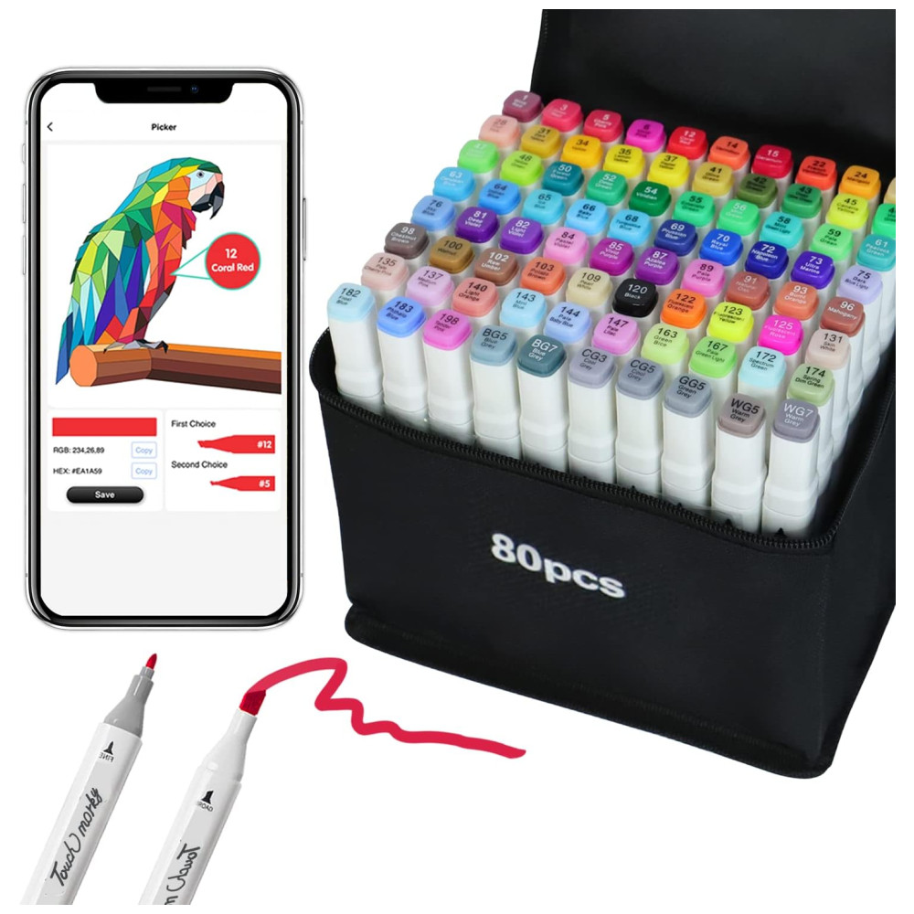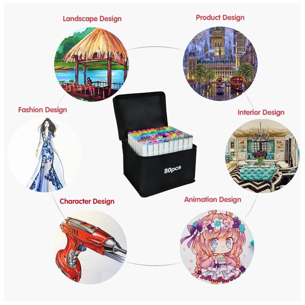 BOA IDEIA DE PRESENTE 80 marcadores de tinta alcoólica vêm com uma bolsa de transporte com zíper durável. Organizadores de fundo resistentes mantêm as canetas em ordem. Este conjunto de marcadores de álcool é ideal para adolescentes, crianças, adultos, estudantes, artistas, amadores, ilustradores profissionais ou iniciantes. Uma ótima ideia de presente para um semestre, aniversário da filha, Natal, ano , etc.