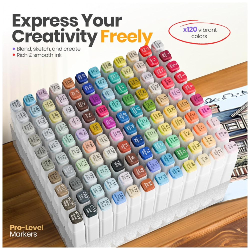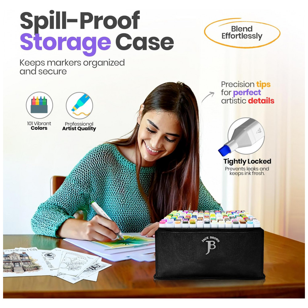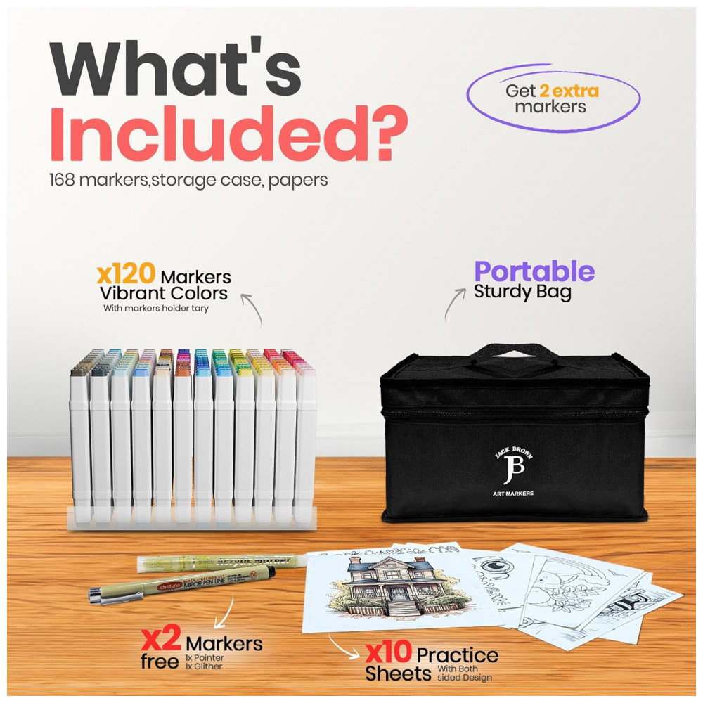 Conjunto de Canetas Artisticas Á Base de Álcool 120 Cores para Artistas Profissionais com Pontas Duplas e Estojo JACK BROWN