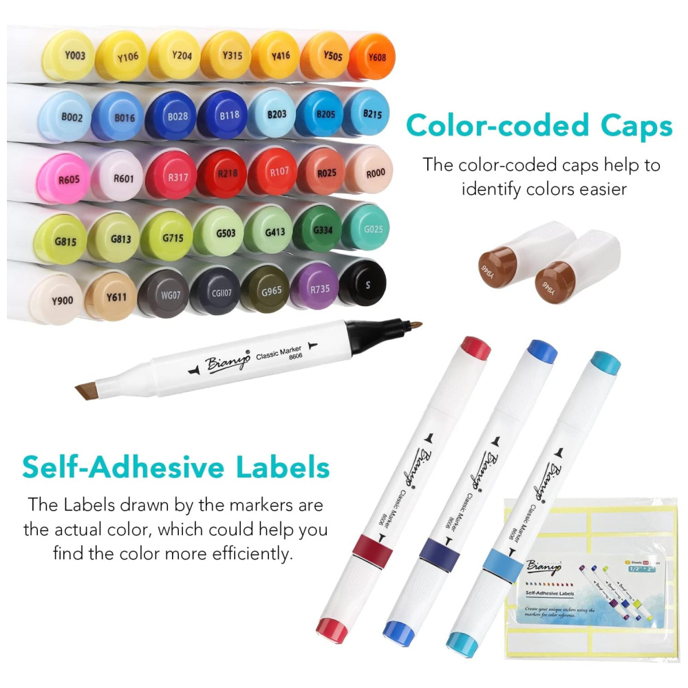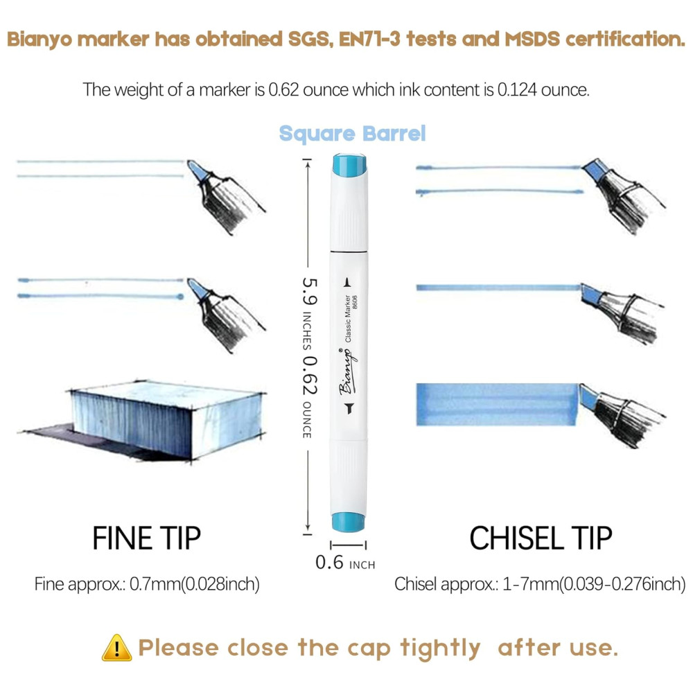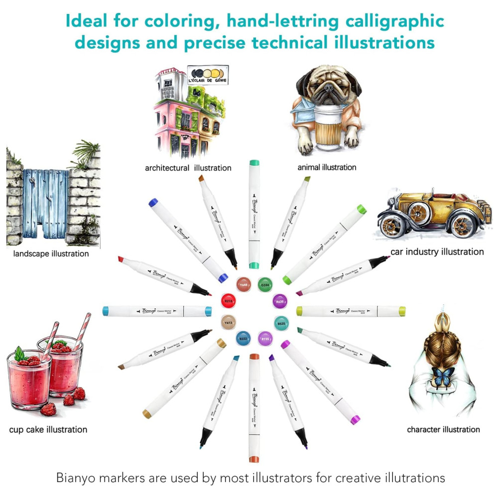Multifuncional e acessível conjunto de marcadores de cores Bianyo, ideal para colorir, desenhar, esboçar, design arquitetônico, renderização de publicidade, paisagem, realçar, sublinhar, livros para colorir, esboços artísticos, ilustrações, letras de caligrafia para iniciantes e outras formas de design de quadrinhos. Preço acessível com 1, 10 do custo em comparação com marcas famosas