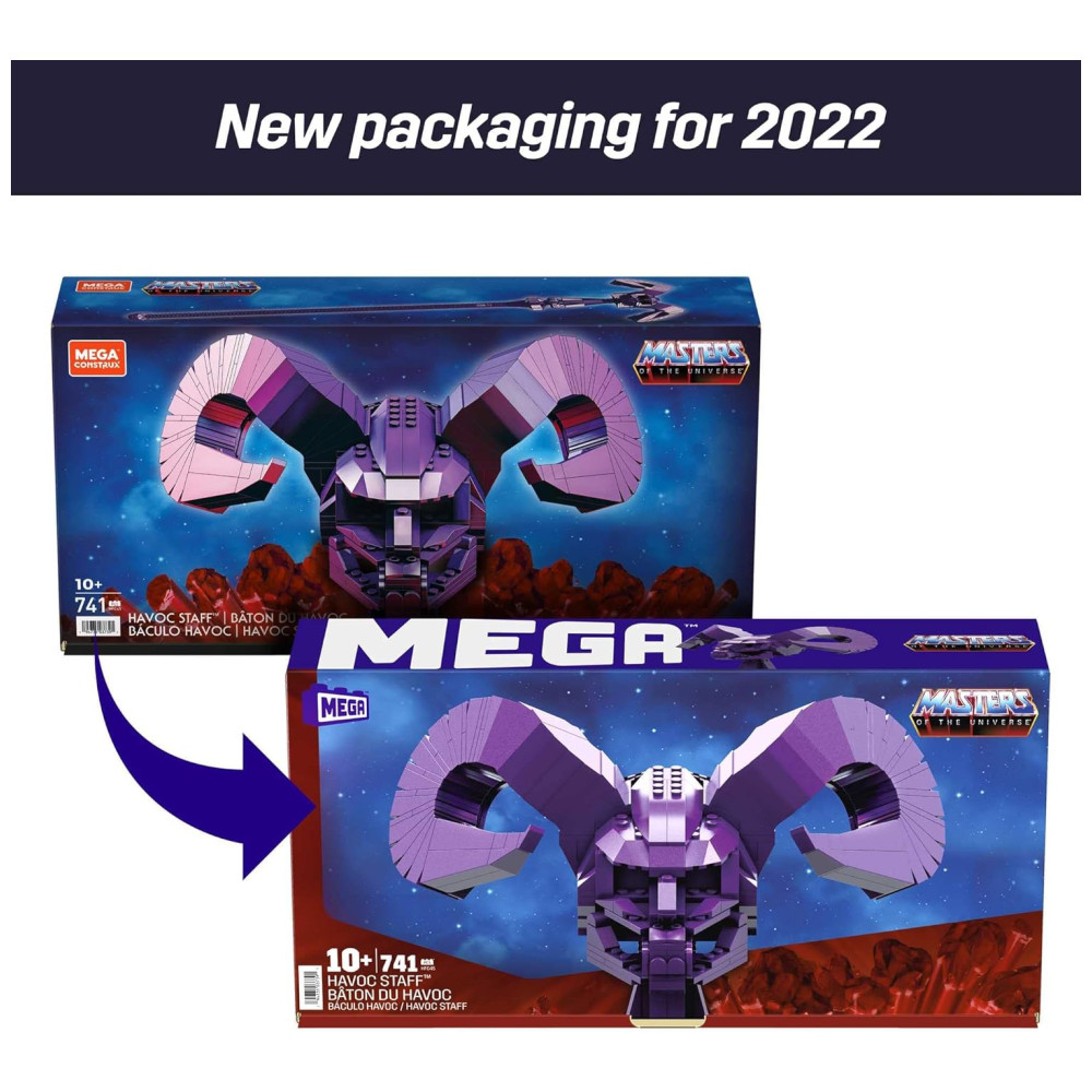 O conjunto de construção de réplica de bastão colecionável Havoc é modelado a partir do cetro exclusivo de Skeletor, com detalhes autênticos, haste cravejada, alça inferior e icônico crânio de carneiro de Zelesia. Composto por 741 tijolos e peças, este conjunto é compatível com todos os brinquedos de construção MEGA e outras marcas.