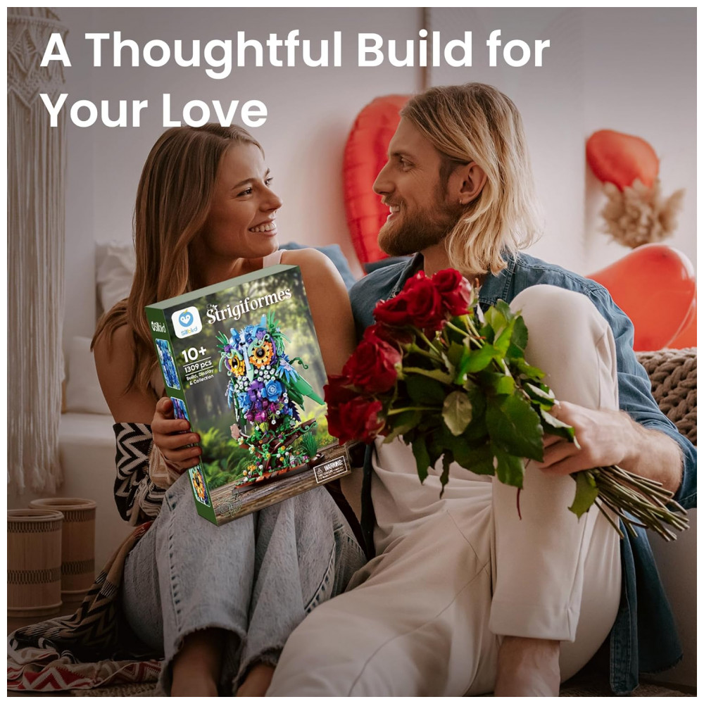 Conjunto de construção coruja floral Sillbird 1309 peças modelo botânico decorativo